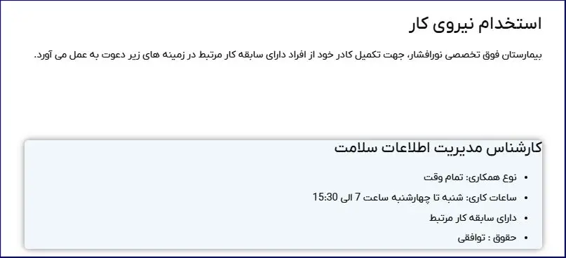 راهنمای فرم استخدام بیمارستان نور افشار