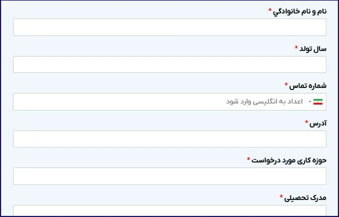 مرحله دوم: تکمیل فرم استخدام