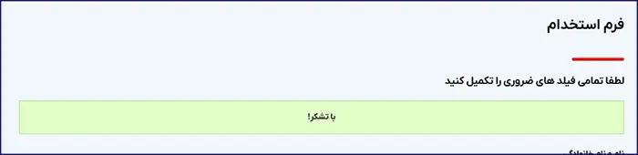 پس از ارسال فرم پیام تایید مطابق تصویر زیر نمایش داده میشود.
