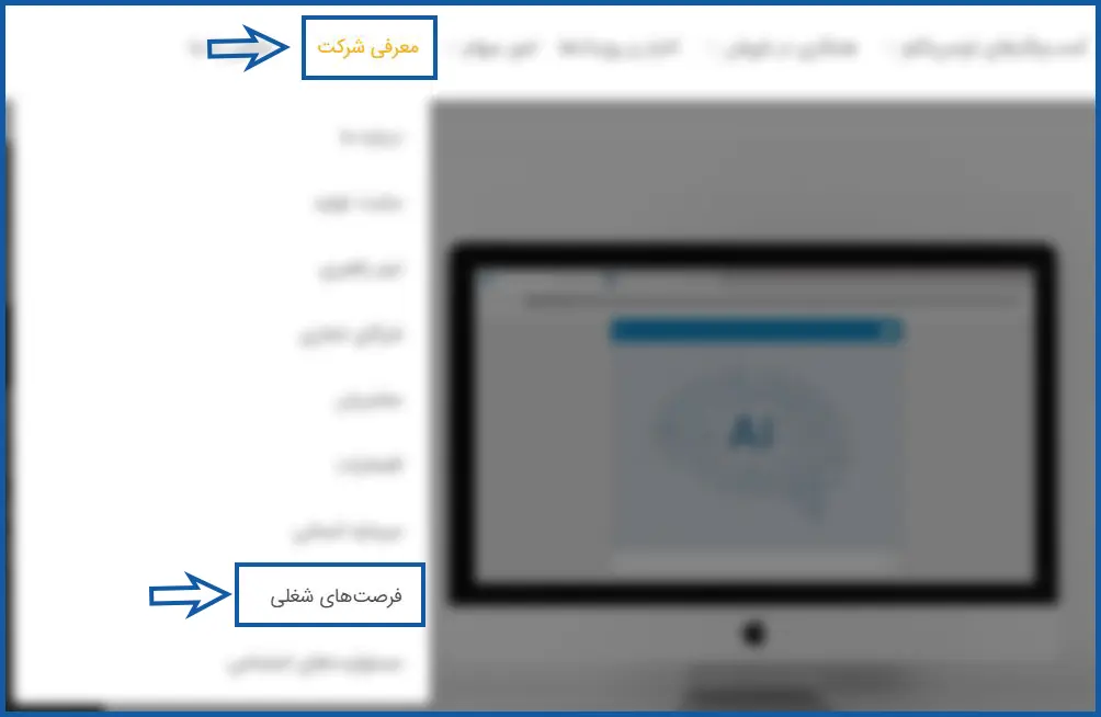 پس از ورود به صفحه اصلی توسن تکنو، از منوی بالای سایت، گزینه "معرفی شرکت" را انتخاب کرده و سپس از منوی باز شده بر روی گزینه "فرصتهای شغلی" کلیک نمایید.