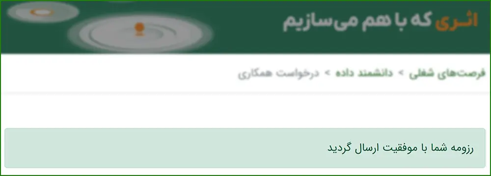 در پایان، اطلاعات ثبتشده را مجدداً بررسی کرده و در صورت اطمینان از صحت آنها، روی گزینه «ارسال رزومه» کلیک نمایید تا درخواست شما با موفقیت ثبت شود.