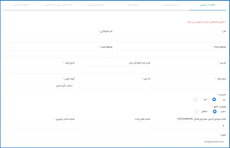 مراحل تکمیل فرم استخدام