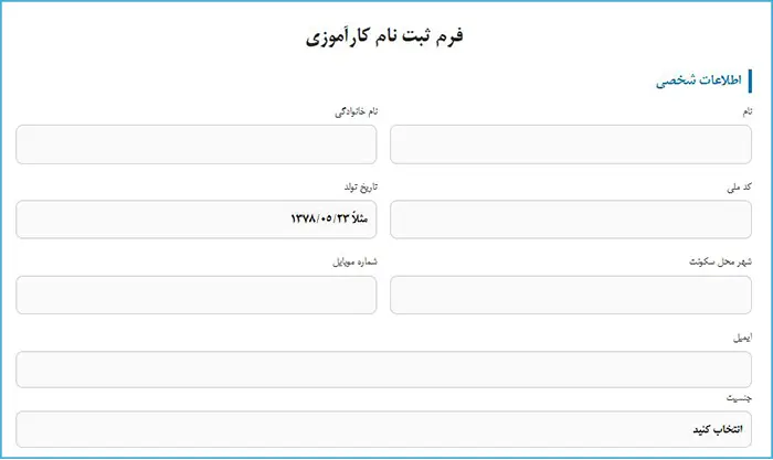 مرحله اول: ورود به صفحه فرم ثبت نام کارآموزی