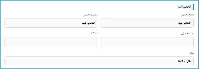 مرحله سوم: تکمیل اطلاعات تحصیلی