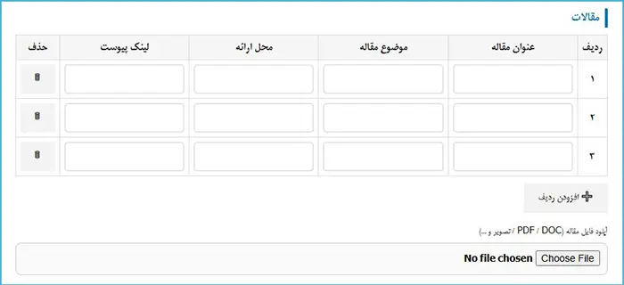 مرحله چهارم: ثبت مقالات و سوابق علمی