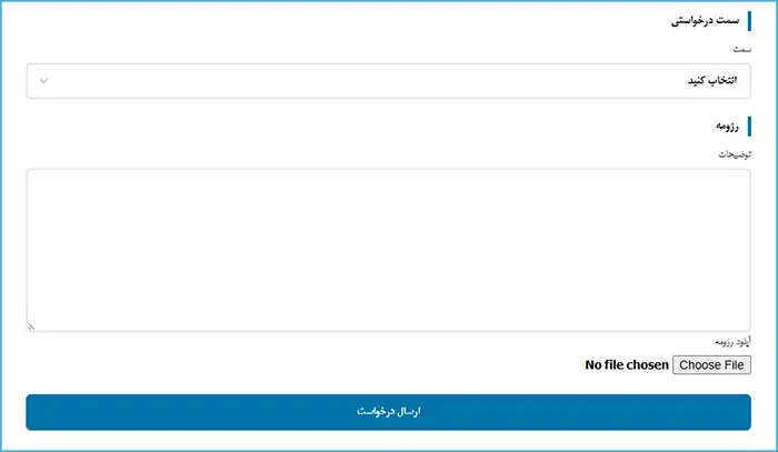 برای تکمیل فرم استخدام، روی دکمه زیر کلیک نمایید.