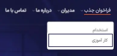 پس از ورود به سایت اصلی این شرکت، از نوار بالای صفحه، گزینه "فراخوان جذب" را انتخاب کرده و در منوی بازشده، روی "کارآموزی" کلیک نمایید.