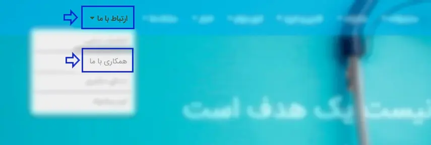 پس از ورود به سایت اصلی این شرکت، از نوار بالای صفحه، گزینه "ارتباط با ما" را انتخاب کرده و در منوی بازشده، روی "همکاری با ما" کلیک نمایید.