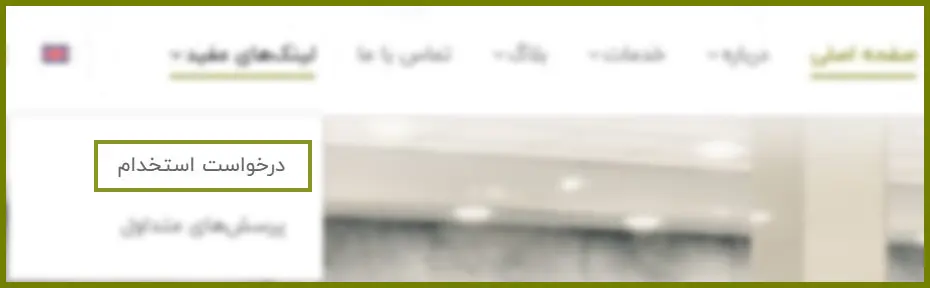 پس از ورود به صفحه اصلی شرکت شاخه زیتون لیان، از سربرگ بالای سایت گزینه «لینکهای مفید» را انتخاب کرده، سپس بر روی گزینه «درخواست استخدام» کلیک نمایید.