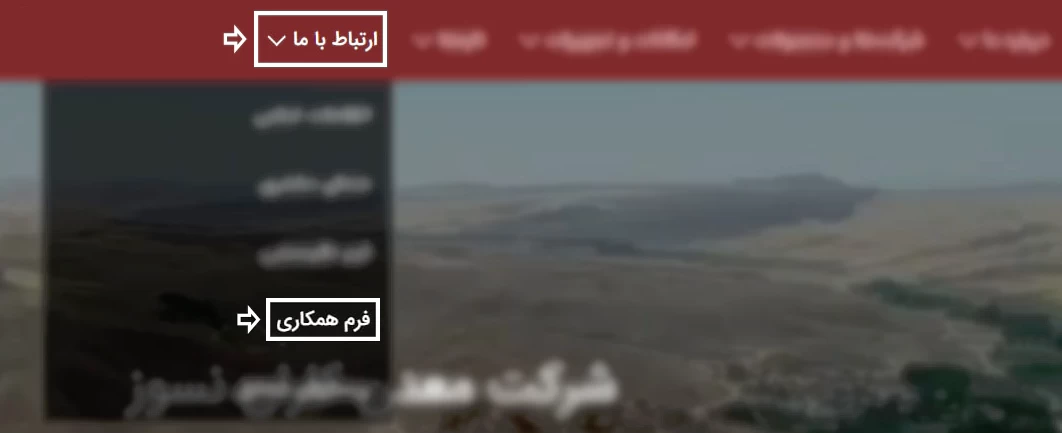 پس از ورود به سایت اصلی این شرکت از نوار بالای صفحه، گزینه "ارتباط با ما" را انتخاب کرده و در منوی بازشده، روی "فرم همکاری" کلیک نمایید.