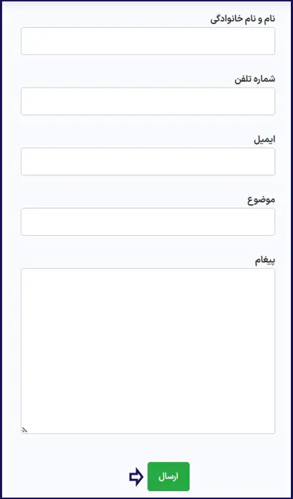 پس از کلیک روی گزینه همکاری با ما، صفحه مشابه تصویر زیر در قالب فرم استخدام نمایش داده می شود که در آن باید اطلاعاتی نظیر نام و نام خانوادگی، شماره تلفن، ایمیل و .. را وارد کرده و سپس روی دکمه "ارسال" کلیک نمایید.