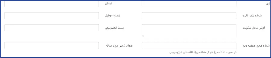 این بخش مربوط به اطلاعات تماس است که می توانید در آن، مواردی نظیر شهر و استان، شماره تلفن، آدرس محل سکونت و.. را وارد نمایید.