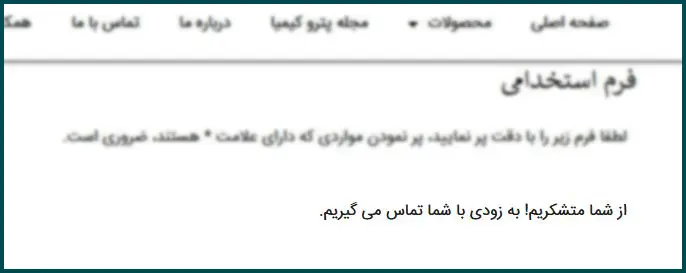 راهنمای فرم استخدام شرکت پترو کیمیا پیوند