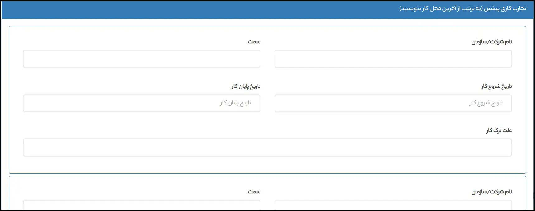 در این مرحله سابقه شغلی خود را مطابق موارد خواسته شده تکمیل نمایید.