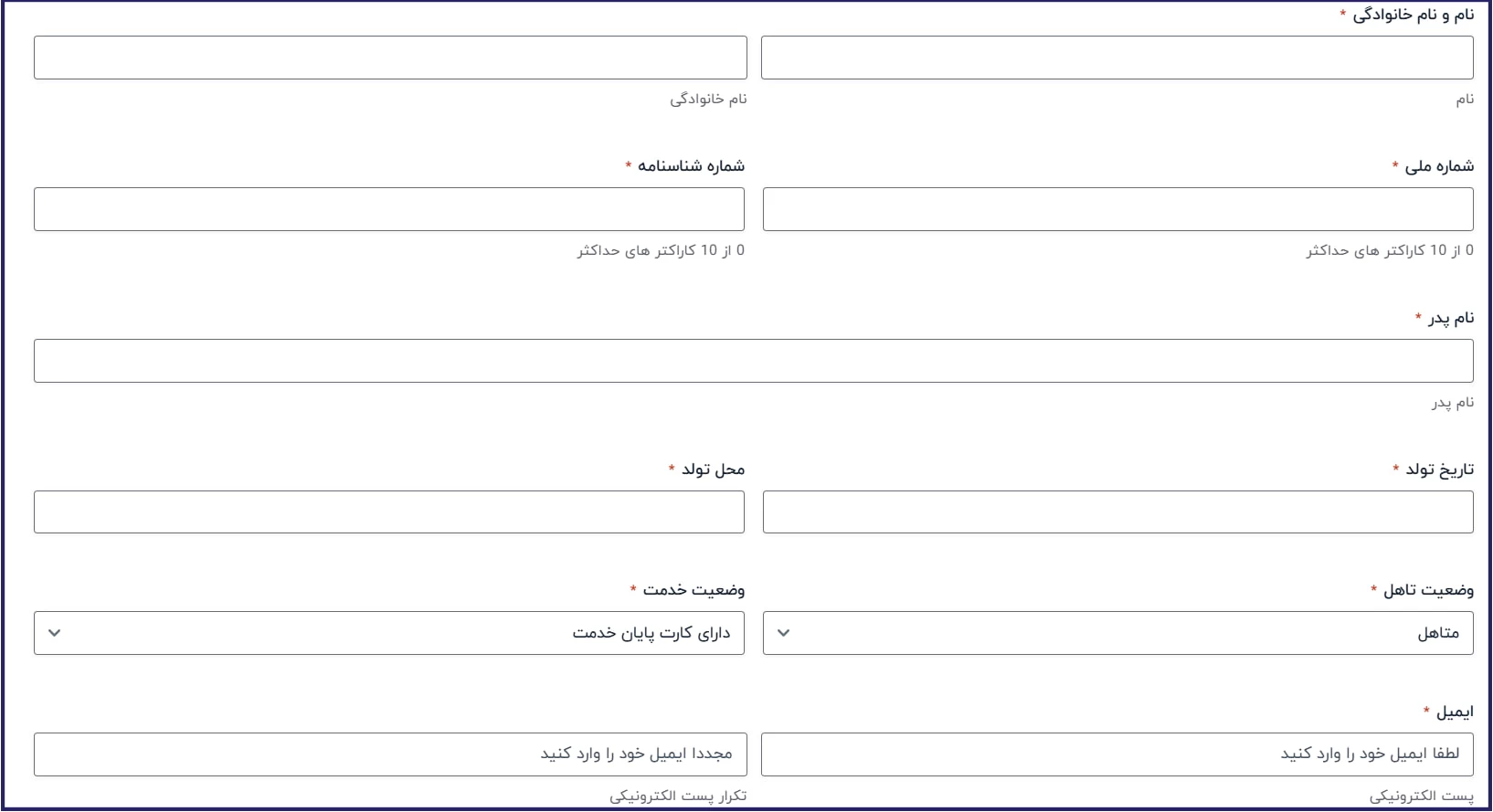 مرحله دوم: ثبت اطلاعات هویتی