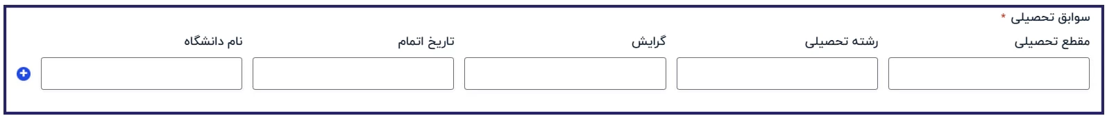 این مرحله مربوط به سوابق تحصیلی شما است که در آن باید مقطع تحصیلی، رشته، گرایش و.. را وارد نمایید.