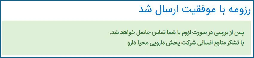 راهنمای فرم استخدام شرکت پخش محیا دارو