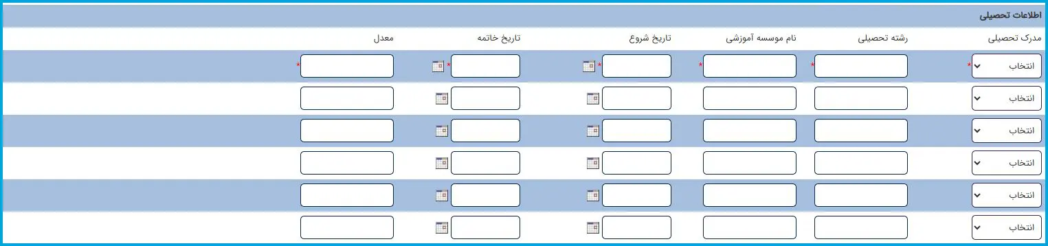 مرحله سوم: تکمیل اطلاعات تحصیلی