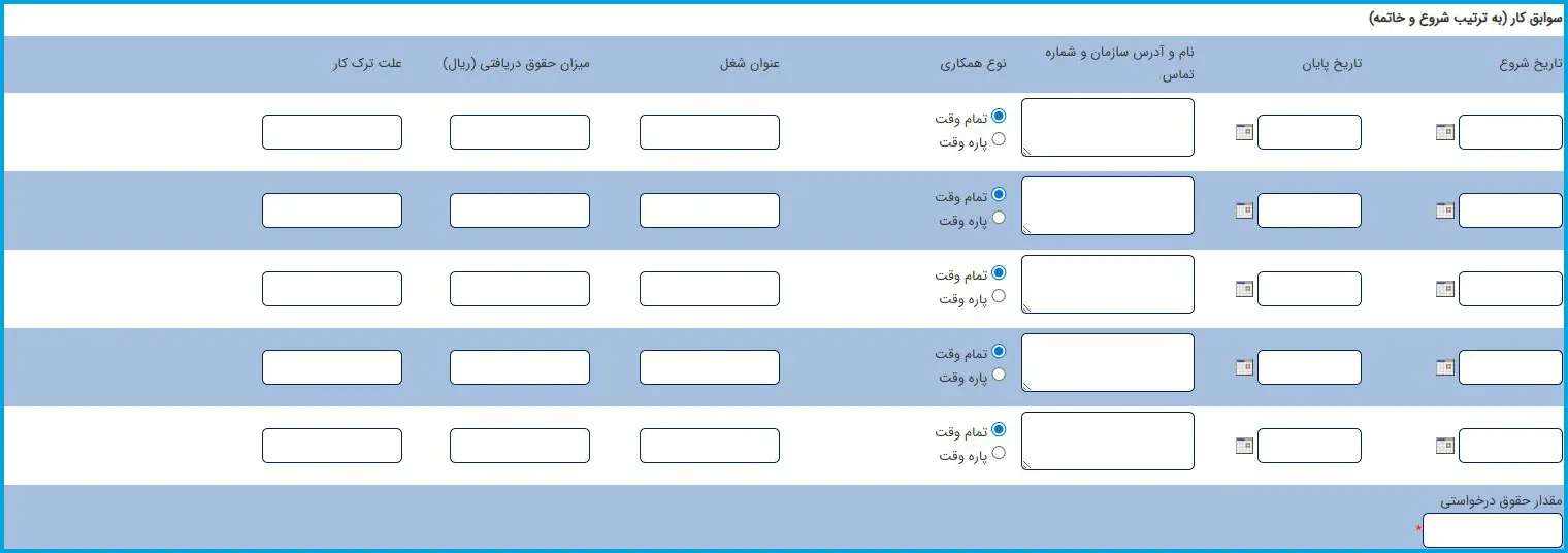 مرحله پنجم: تکمیل اطلاعات سوابق کاری