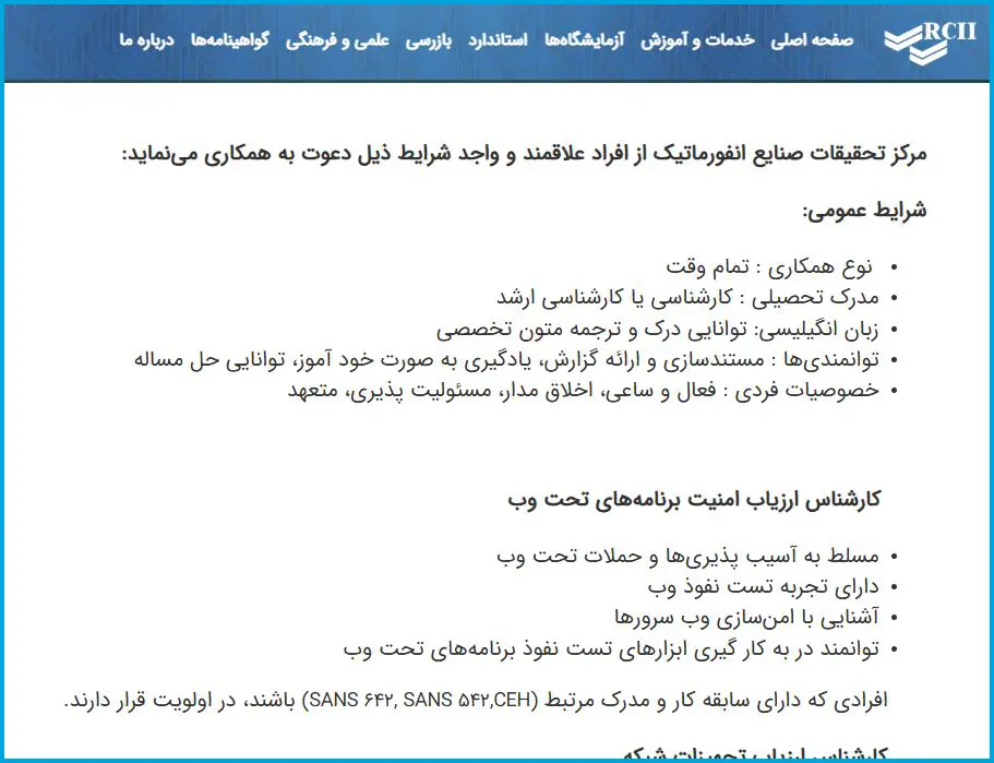 فرصتهای شغلی مرکز تحقیقات صنایع انفورماتیک