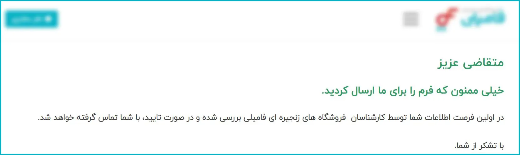 پس از ارسال فرم استخدام، پیام تأیید مطابق تصویر زیر نمایش داده میشود. مشاهده این پیام به معنای ثبت موفق درخواست شما و قرار گرفتن آن در صف بررسی کارشناسان هایپرفامیلی است. در صورت تطابق اطلاعات ارسالشده با شرایط شغل موردنظر، کارشناسان مربوطه با شما تماس خواهند گرفت.