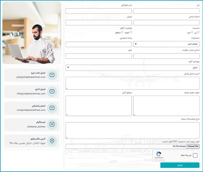 مرحله اول: ورود به صفحه فرم استخدام هواپیمایی چابهار