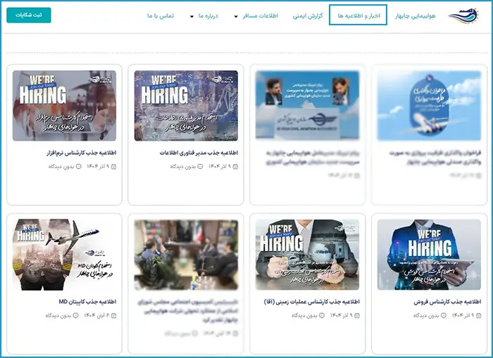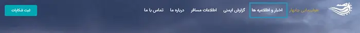 ابتدا وارد وبسایت رسمی هواپیمایی چابهار شوید و از منوی اصلی، گزینه «اخبار و اطلاعیهها» را انتخاب کنید.