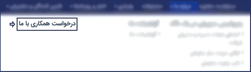 پس از ورود به سایت اصلی این شرکت از نوار بالای صفحه، گزینه "درباره ما" را انتخاب کرده و در منوی بازشده، روی "درخواست همکاری با ما" کلیک نمایید.
