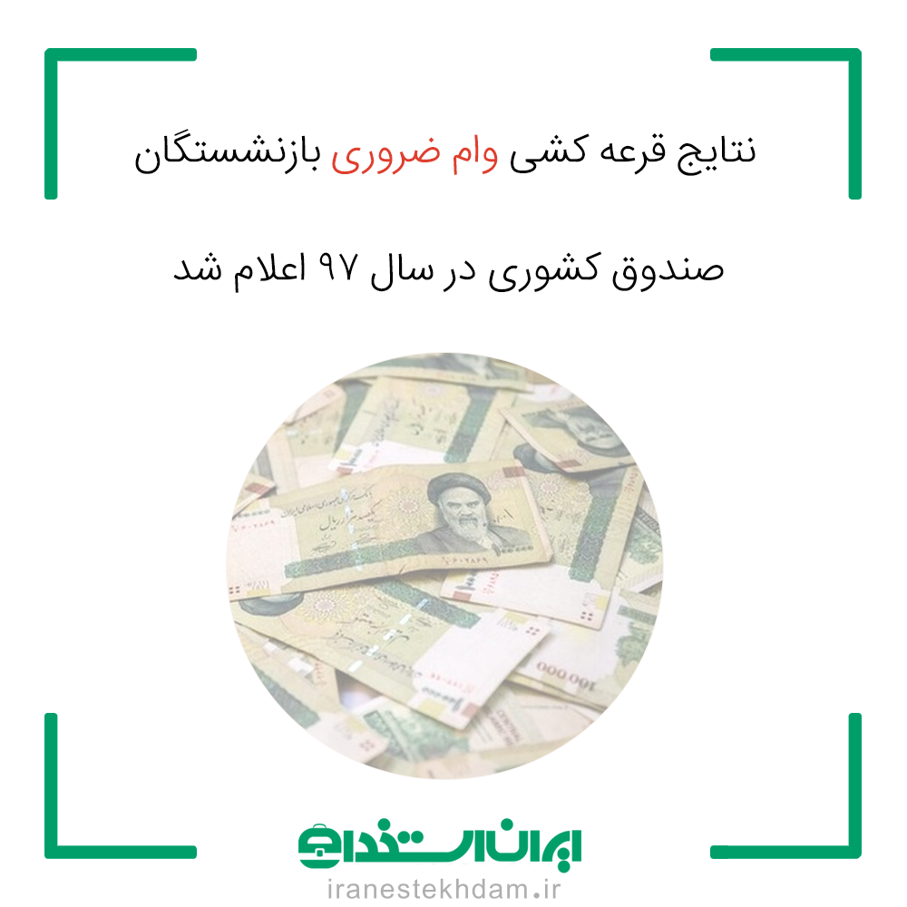 نتايج قرعه کشی وام ضروری بازنشستگان صندوق کشوری در سال ۹۷ اعلام شد