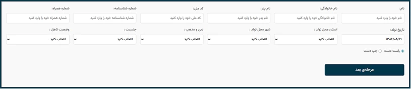 در این مرحله باید اطلاعات هویتی خود، شامل نام و نام خانوادگی و. را وارد نمایید.