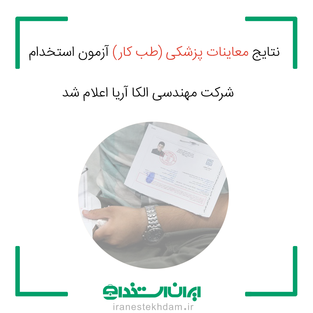 اعلام نتایج معاینات پزشکی (طب کار) آزمون استخدام شرکت مهندسی الکا آریا
