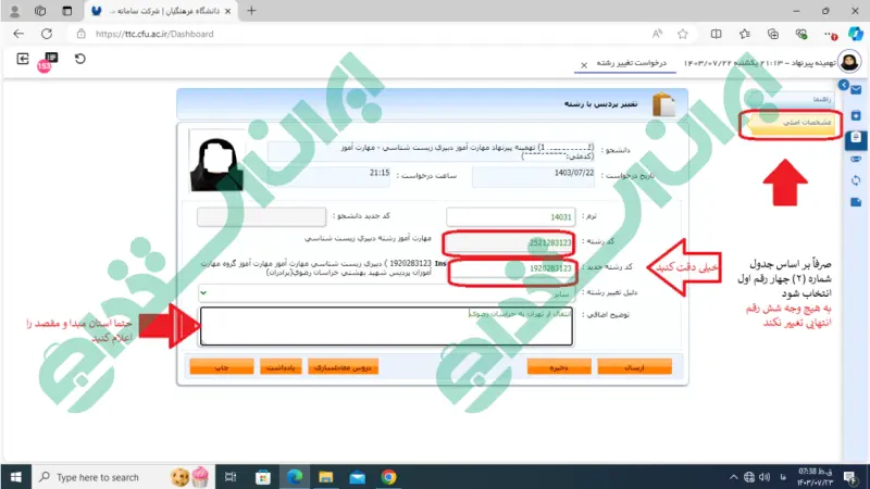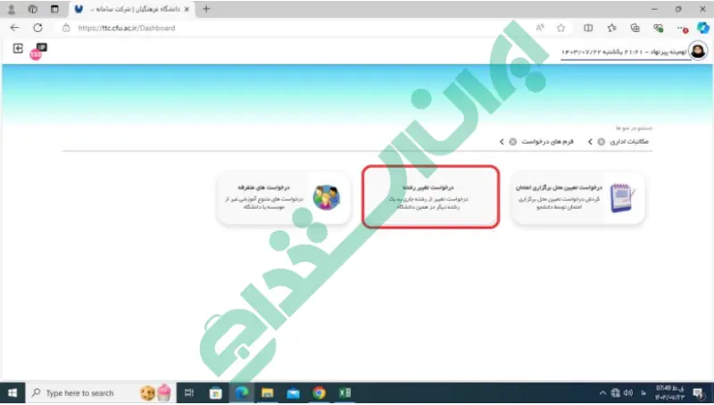 نحوه ثبت درخواست انتقال دانشگاه فرهنگیان