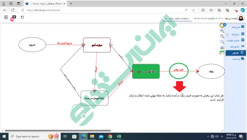 در انتها تائید نهایی به رنگ قرمز تبدیل خواهد شد که منزله تغییر محل تحصیل شما میباشد.