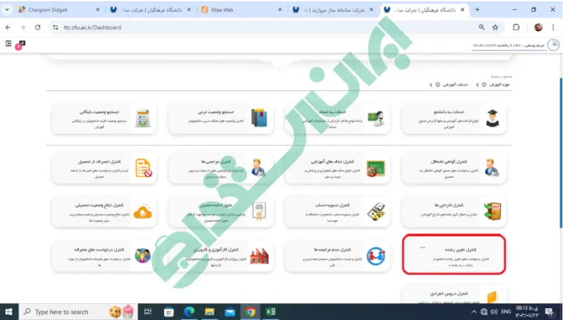 نحوه ثبت درخواست تغییر استان/پردیس/دانشکده