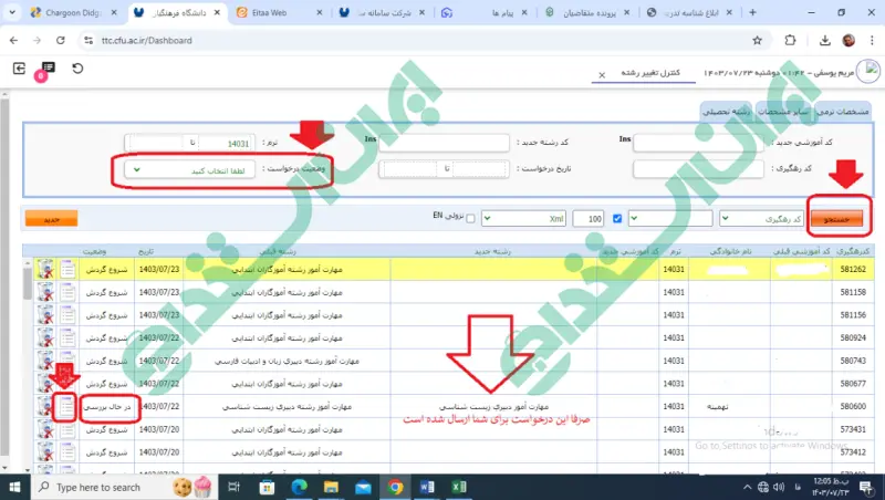 راهنمای تصویری برررسی درخواست مهارت آموزان