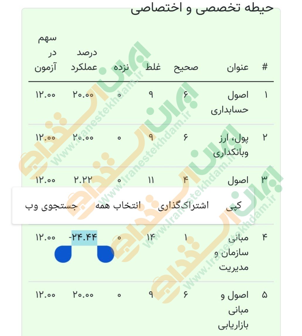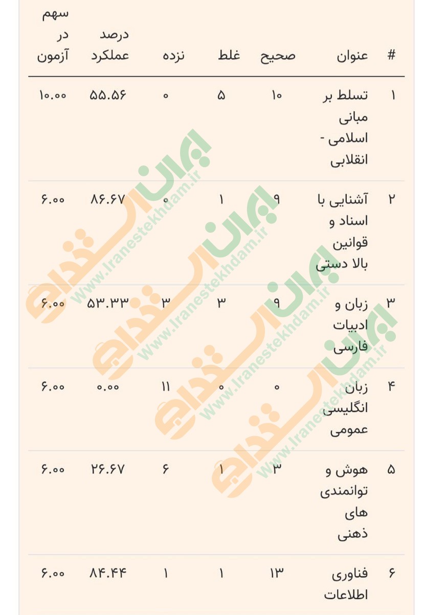 نمونه کارنامه های آزمون استخدامی فراگیر دوازدهم سال ۱۴۰۳