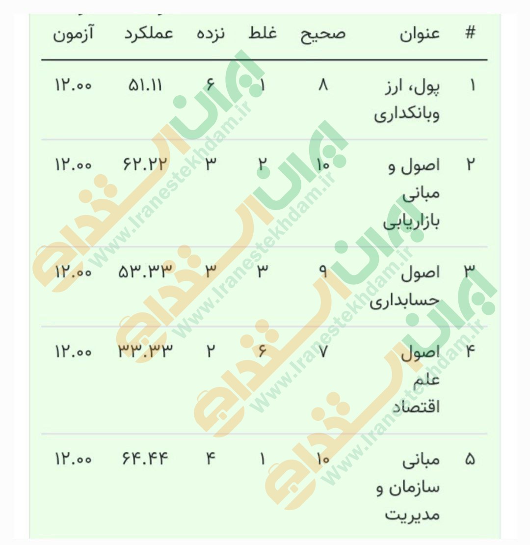 نمونه کارنامه های ارسال شده کاربران