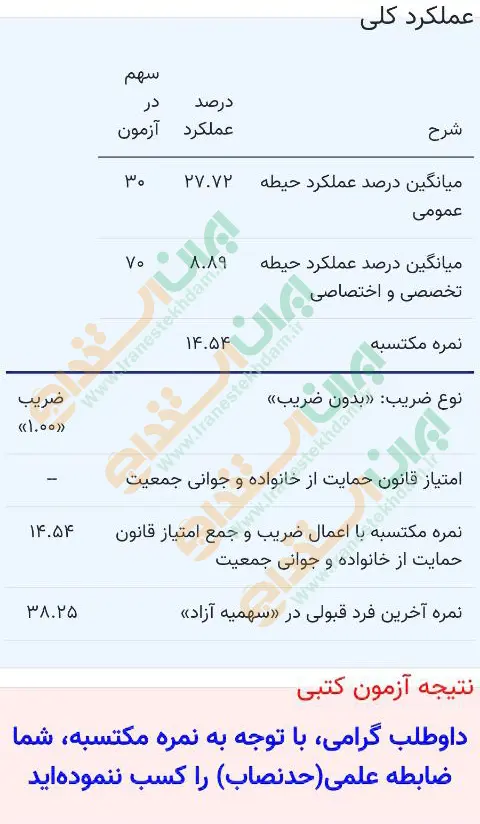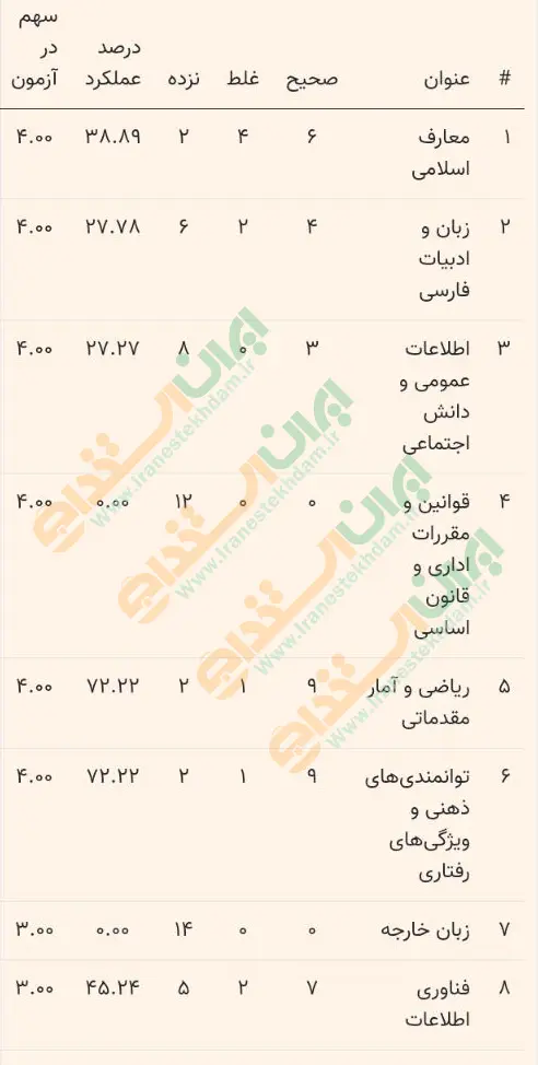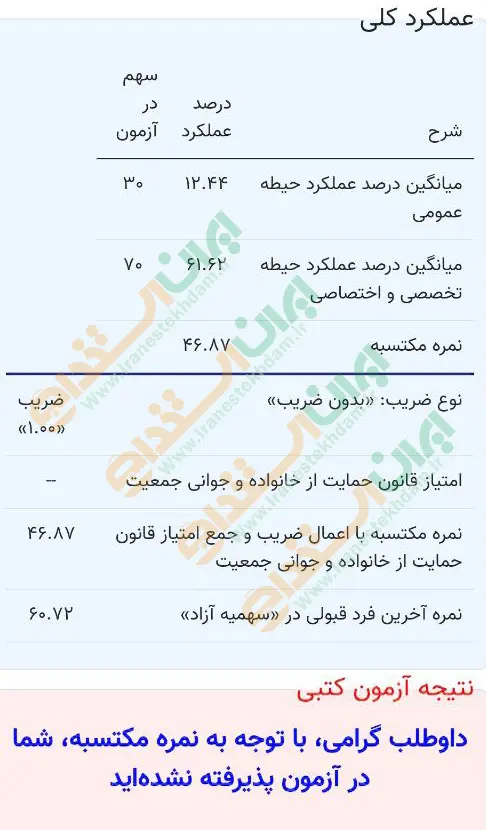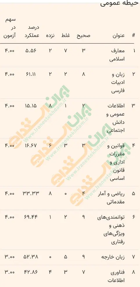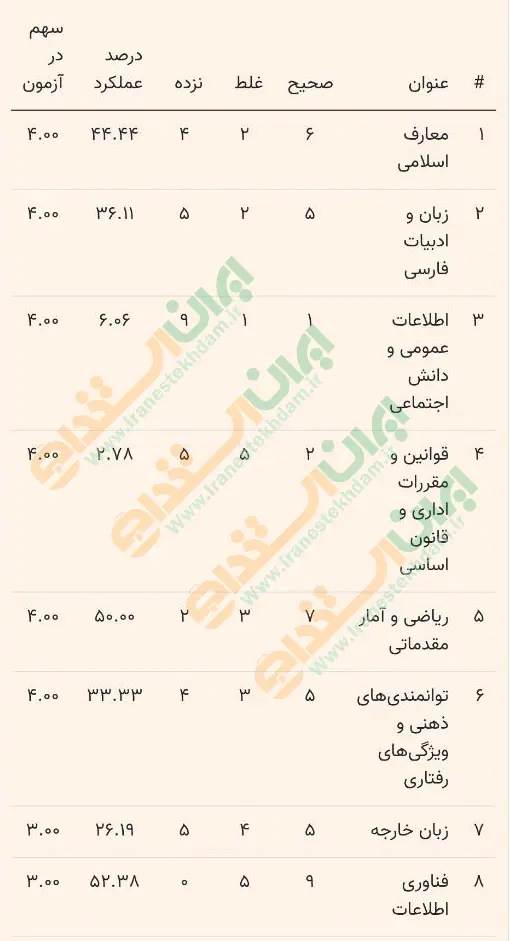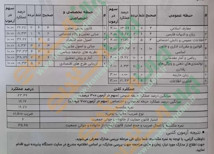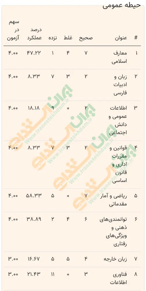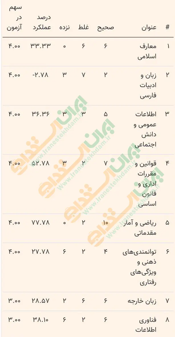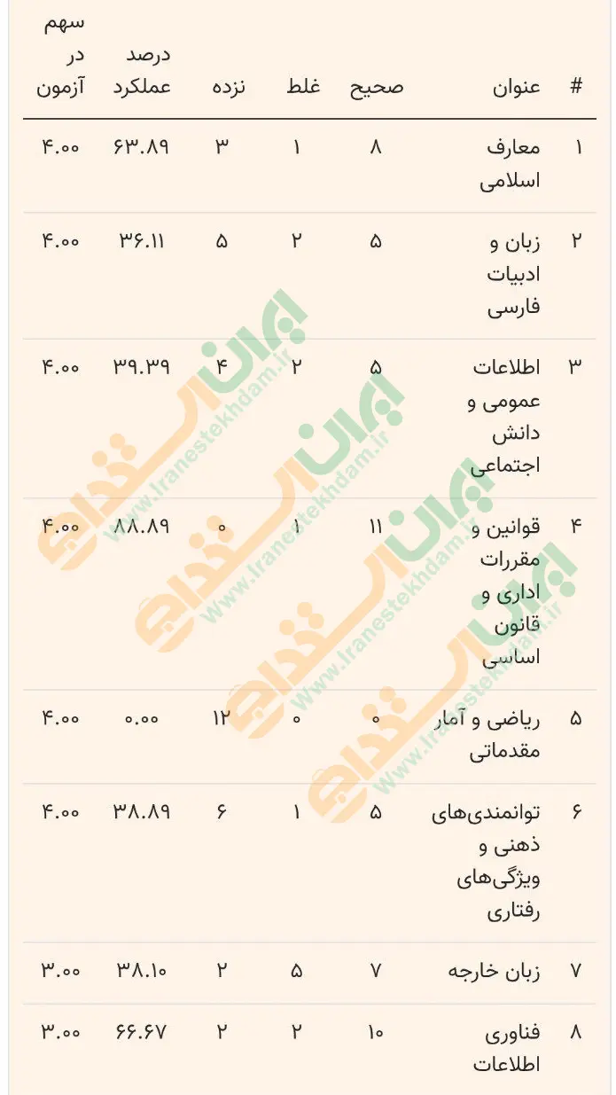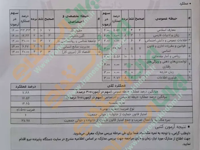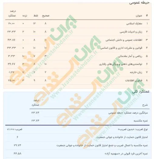 نمونه کارنامه های آزمون استخدامی فراگیر سیزدهم سال ۱۴۰۴
