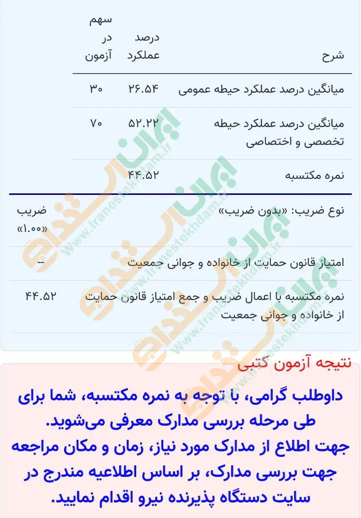 جهت مشاهده نمونه کارنامههای استخدامی فراگیر سیزدهم در سال 1404 بر روی تصویر کارنامه کلیک نمایید.