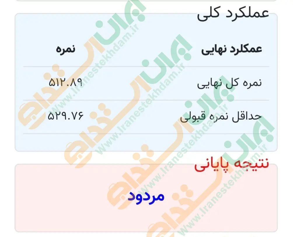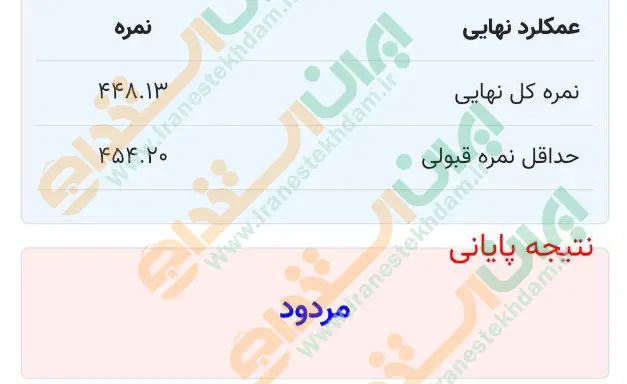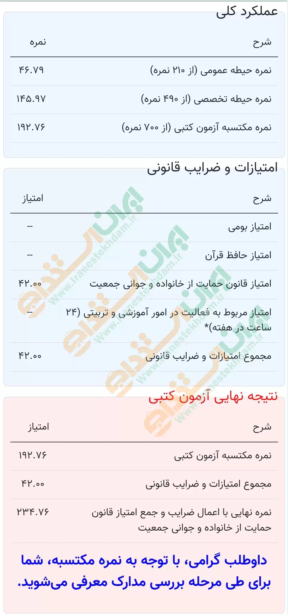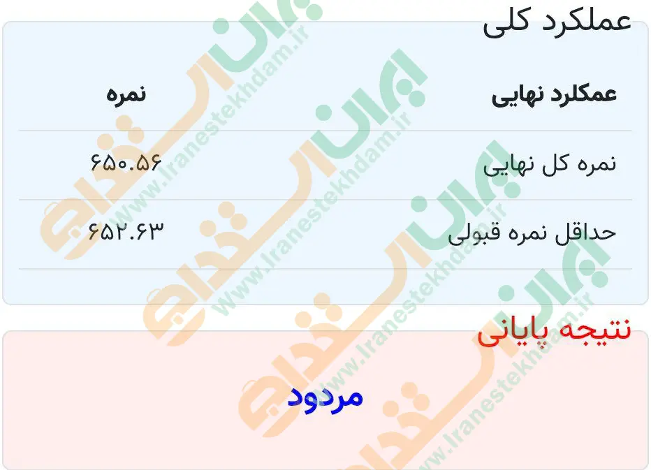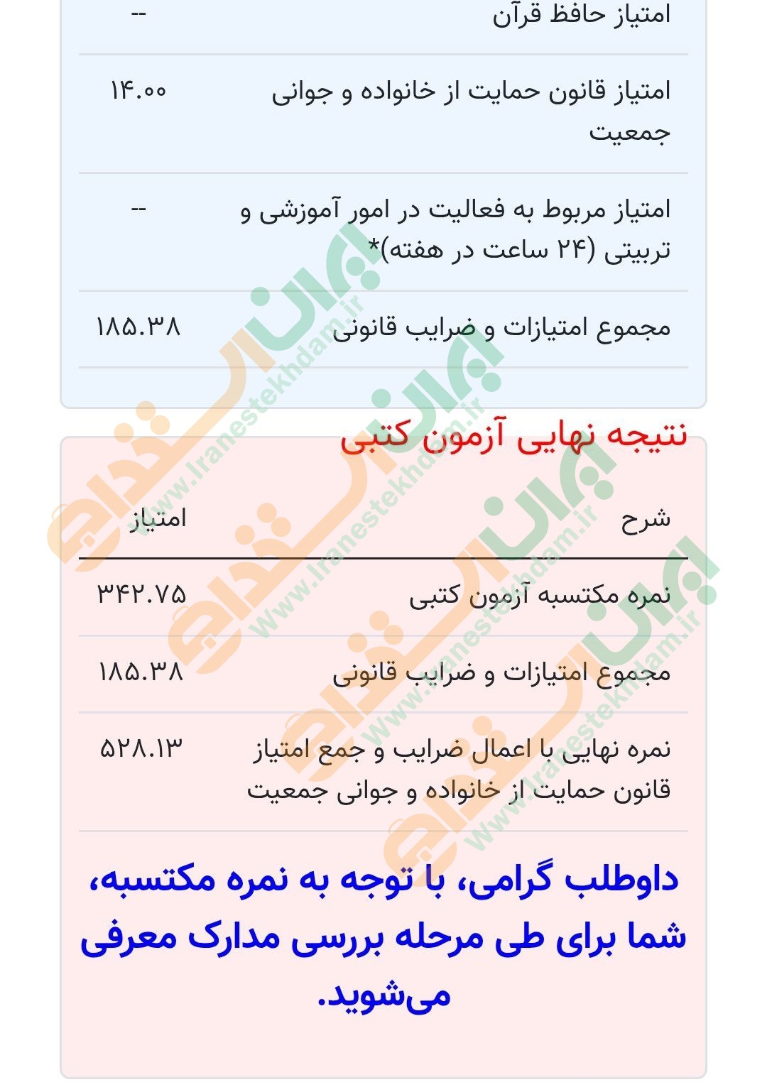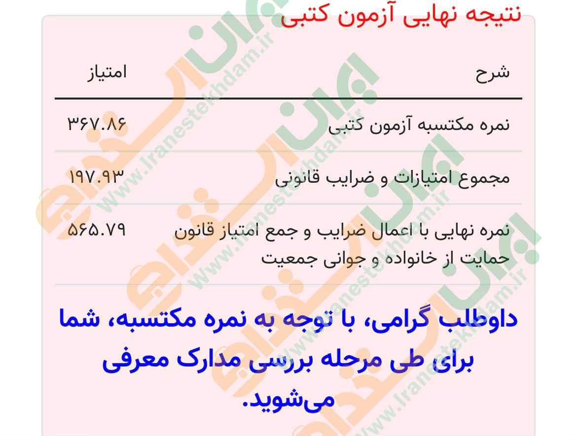 جهت مشاهده نمونه کارنامههای استخدام آموزش و پرورش در سال 1404 بر روی تصویر کارنامه کلیک نمایید.