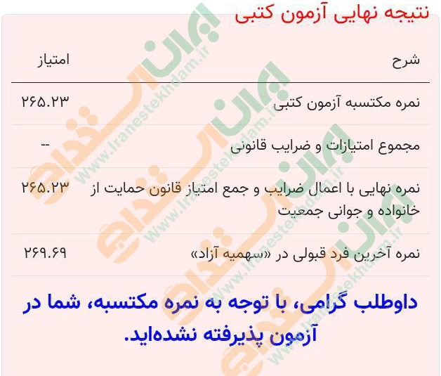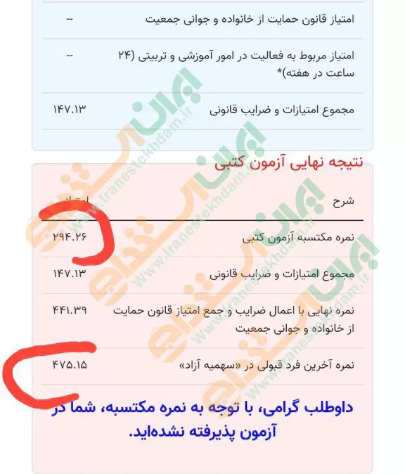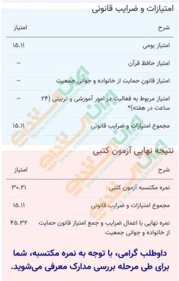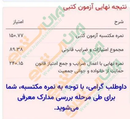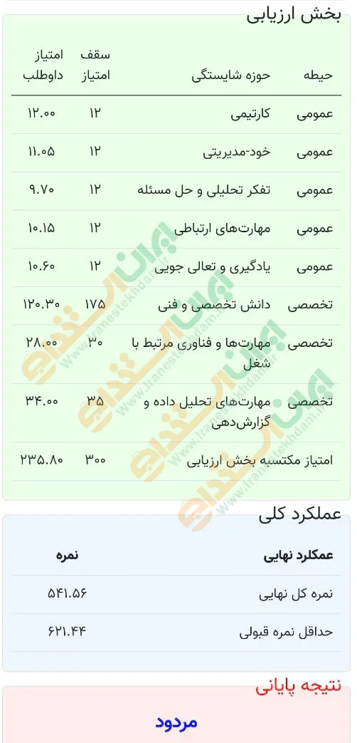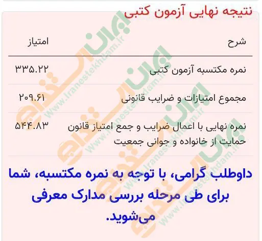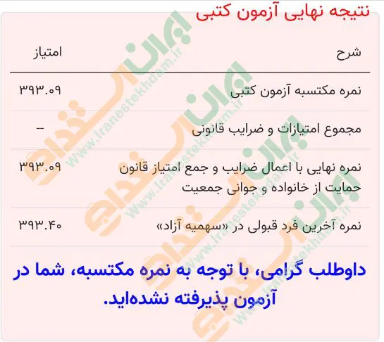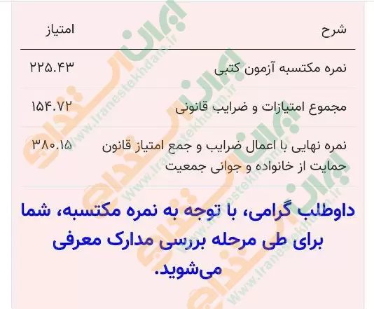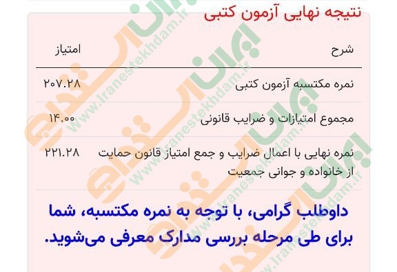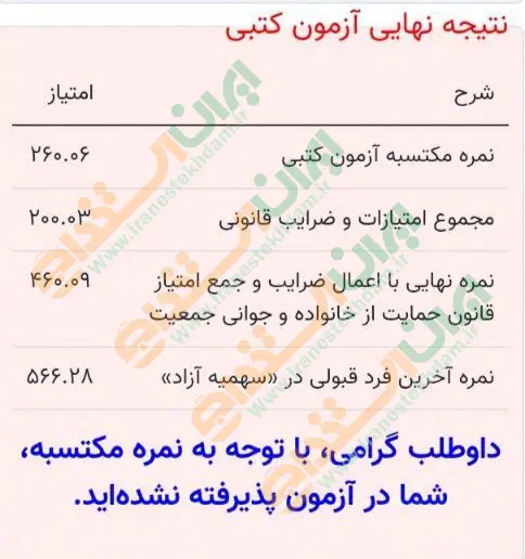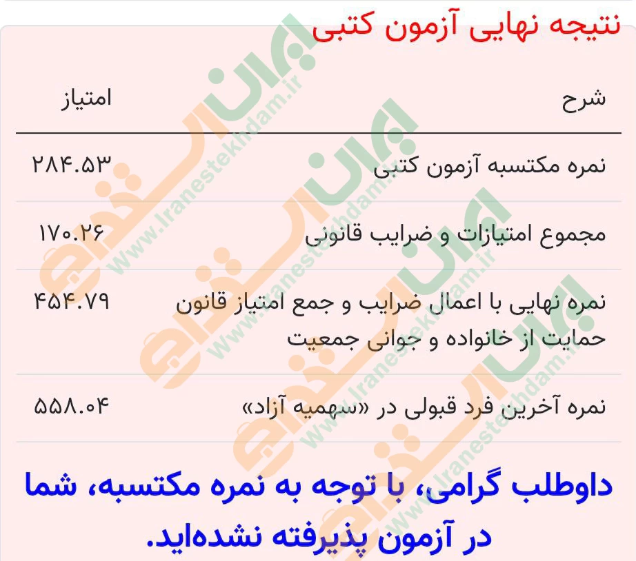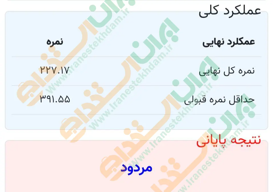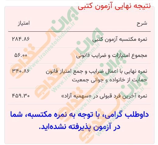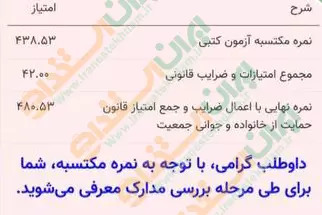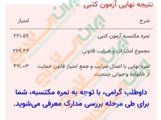 جهت مشاهده نمونه کارنامههای استخدام آموزش و پرورش در سال 1404 بر روی تصویر کارنامه کلیک نمایید.