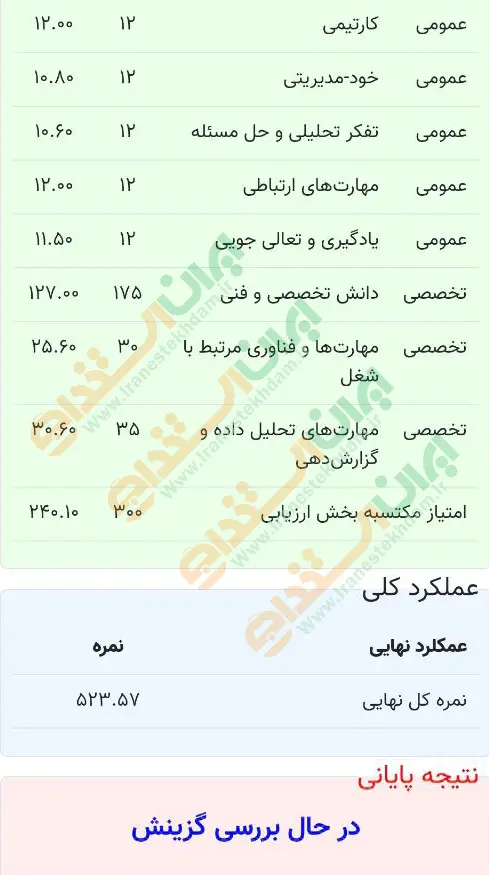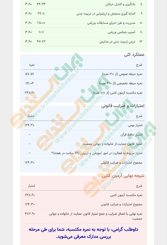 کارنامههای نهایی استخدام آموزش و پرورش |