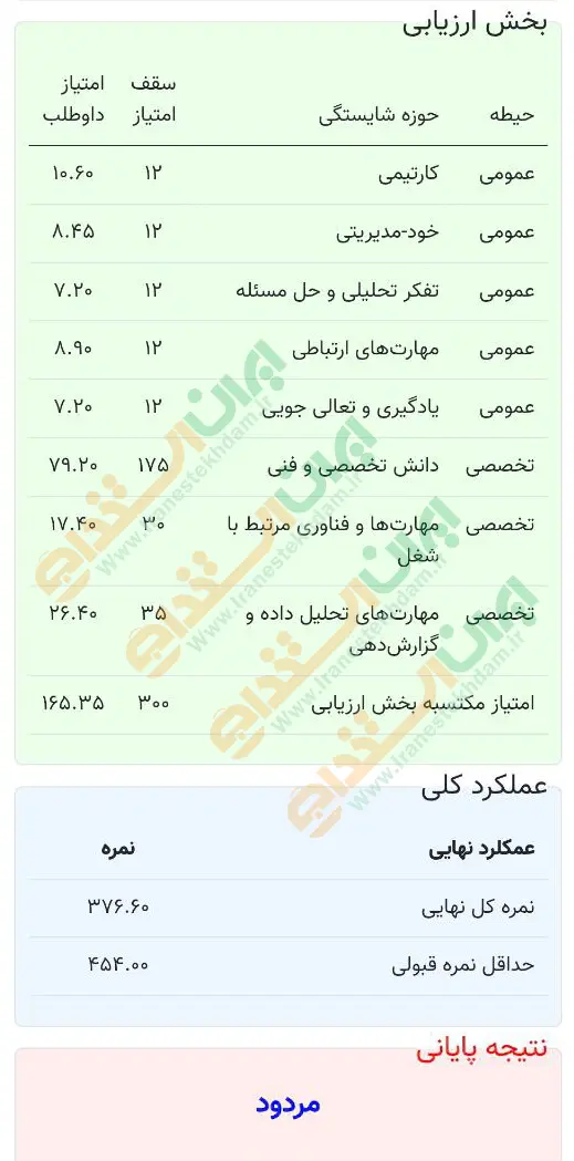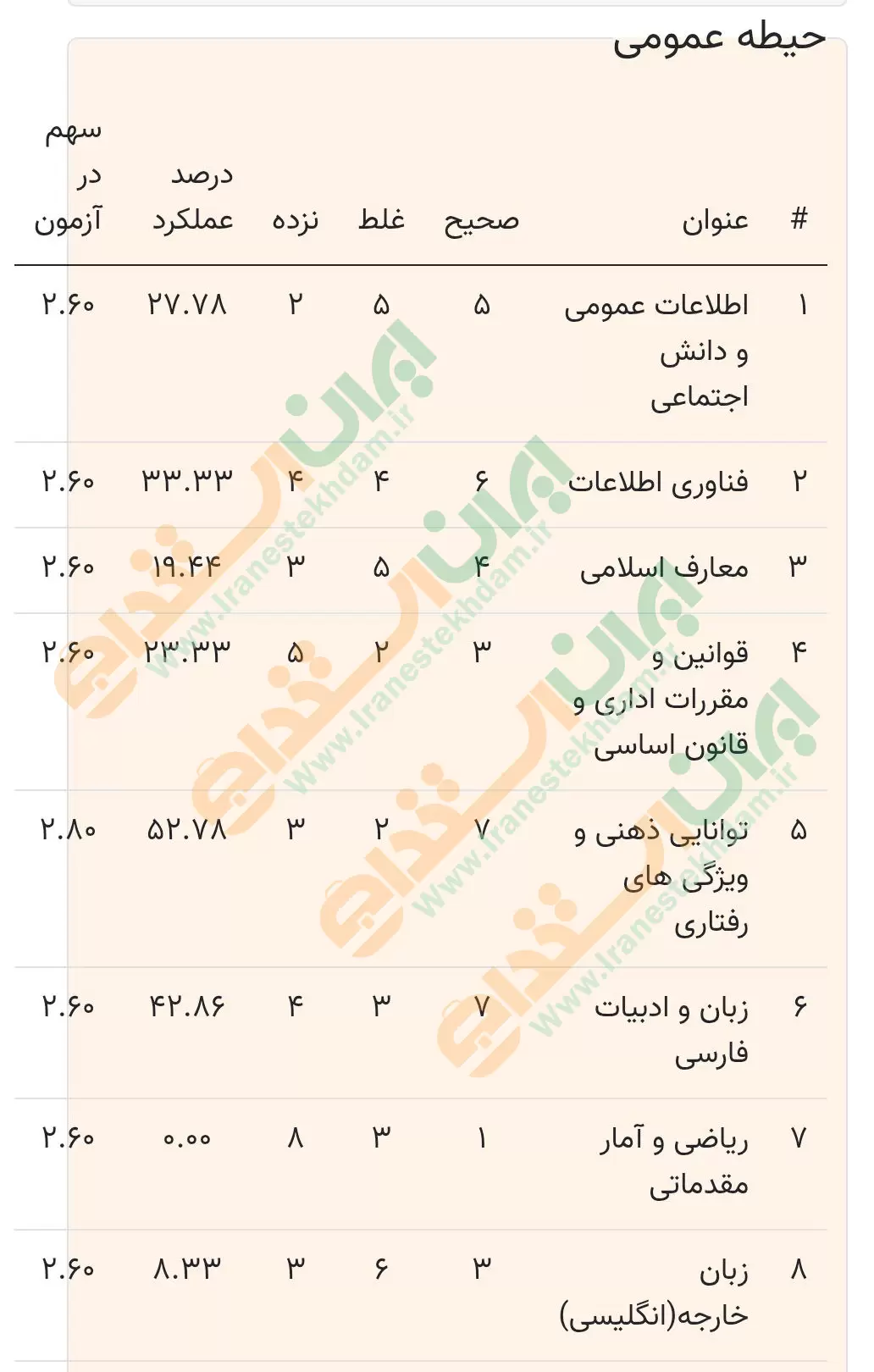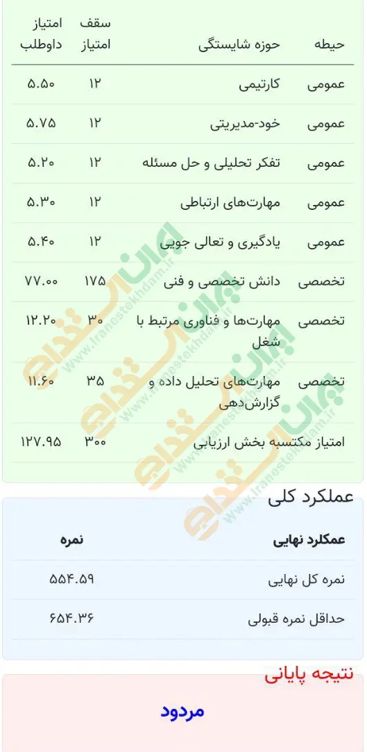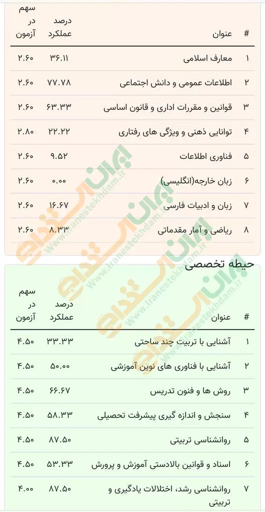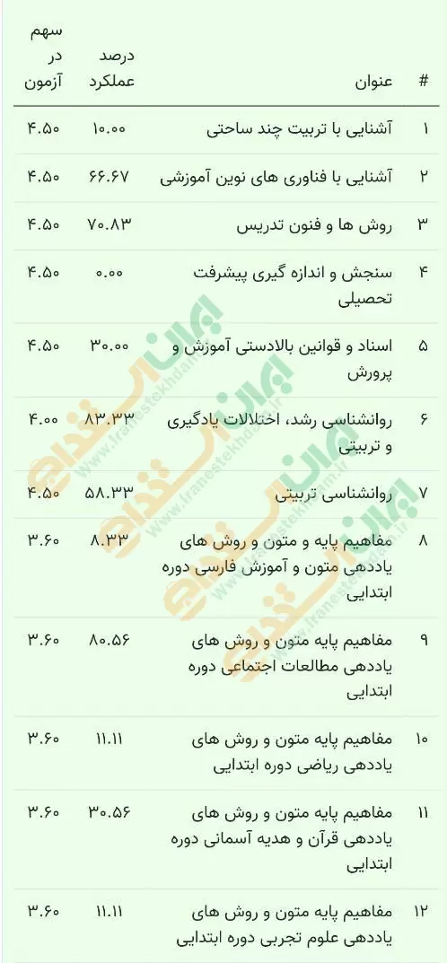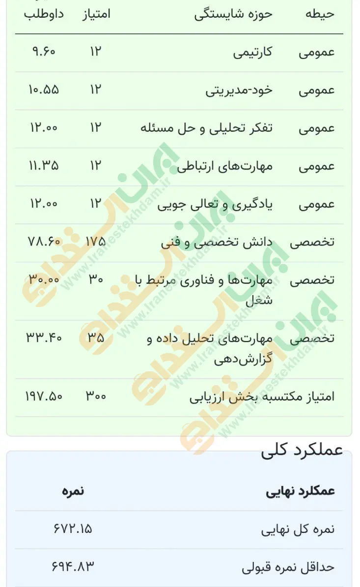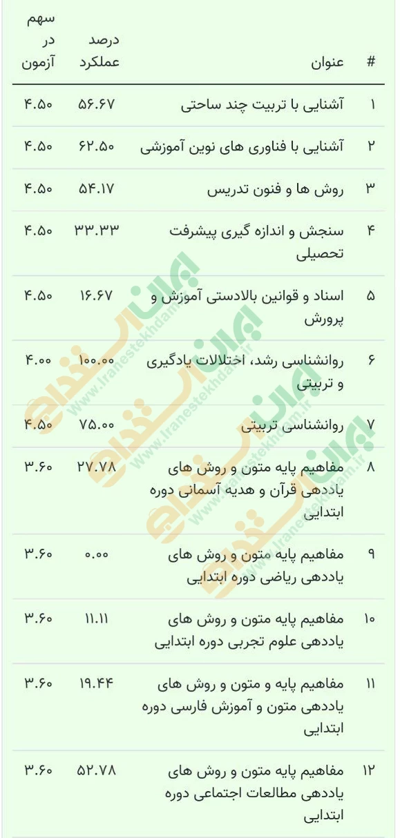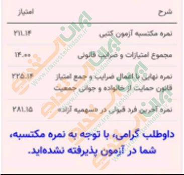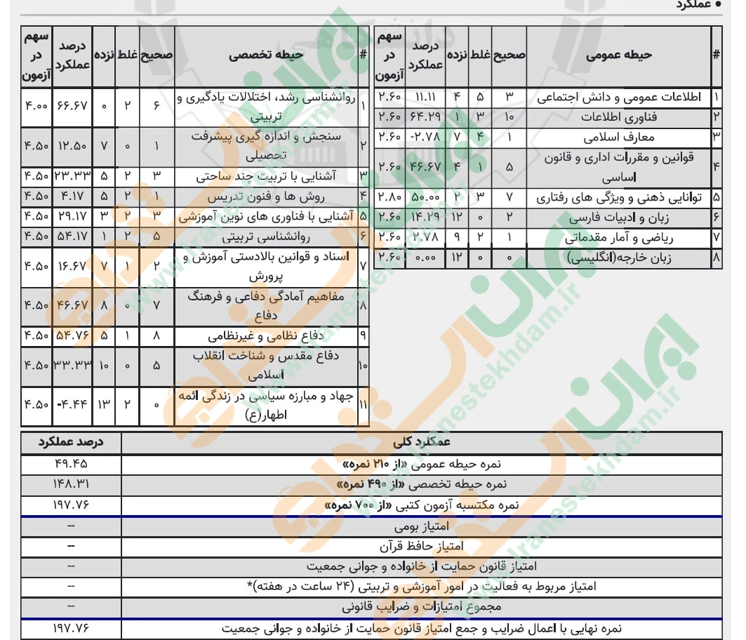 نمونه کارنامه های آزمون استخدام آموزش و پرورش ۱۴۰۴