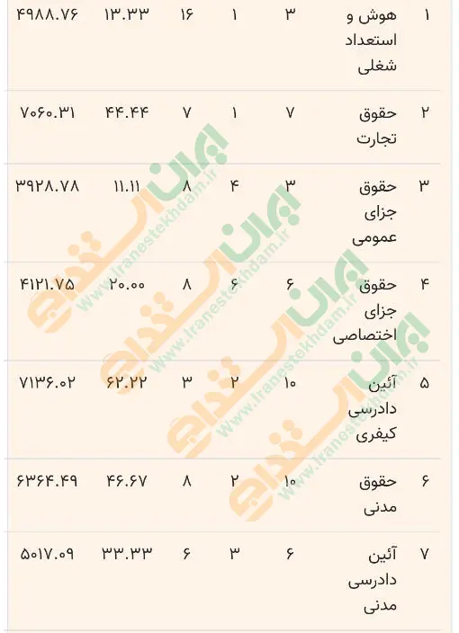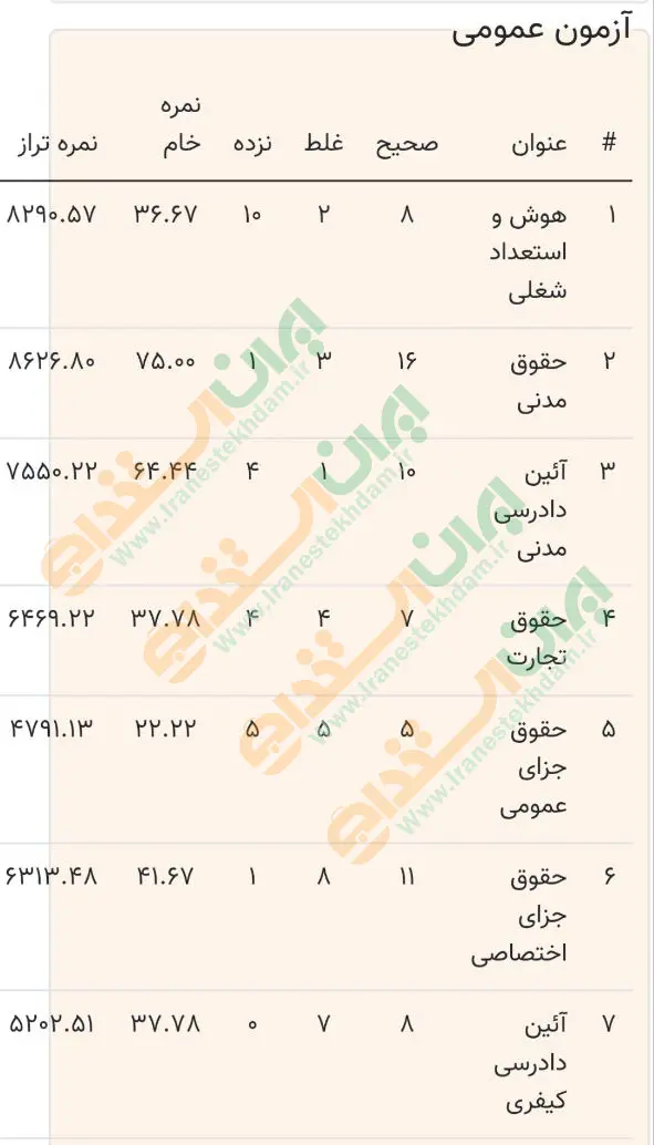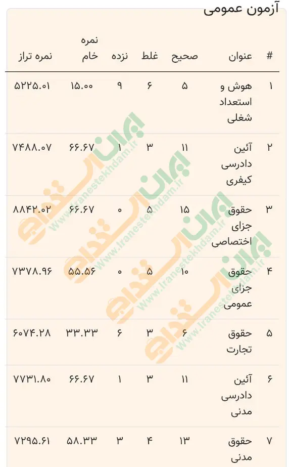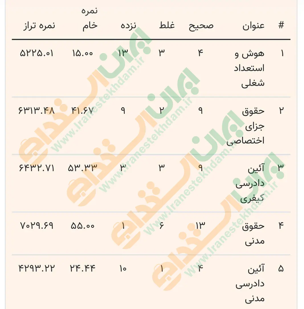 نمونه کارنامه های آزمون قضاوت سال ۱۴۰۴