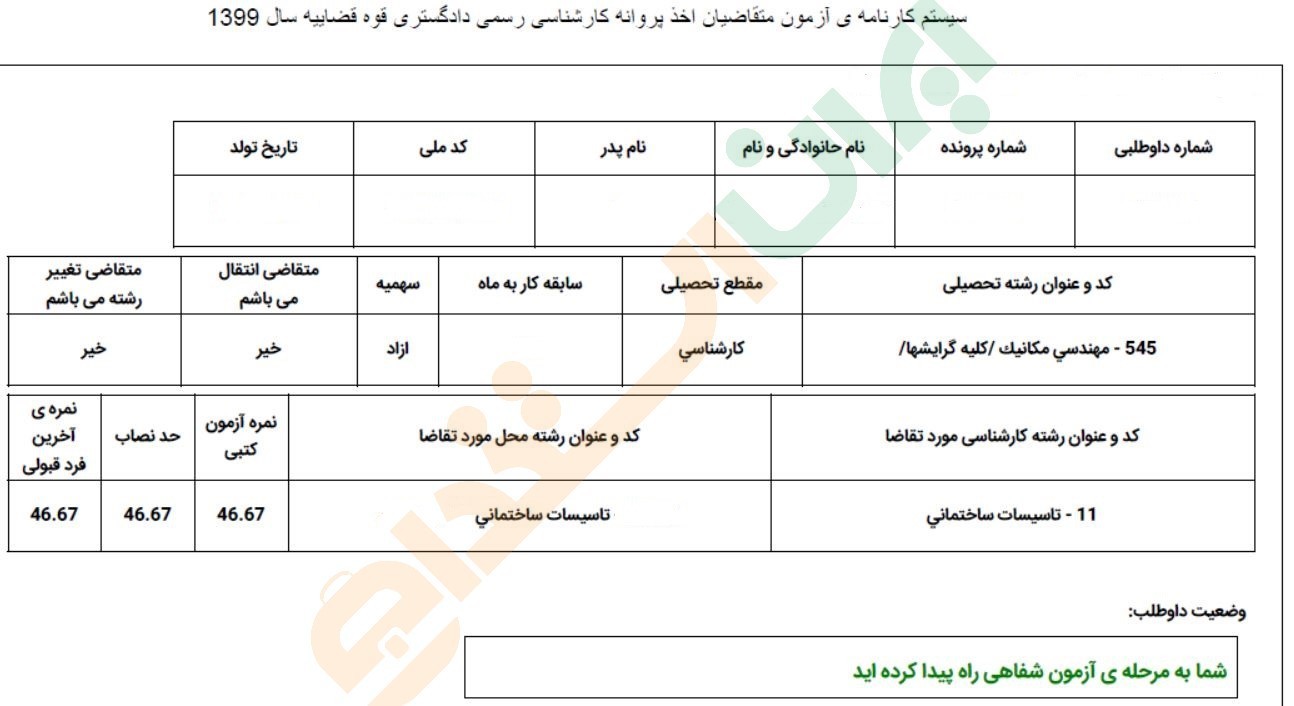 جهت مشاهده نمونه کارنامههای استخدامی کارشناس رسمی دادگستری بر روی تصویر کارنامه کلیک نمایید.