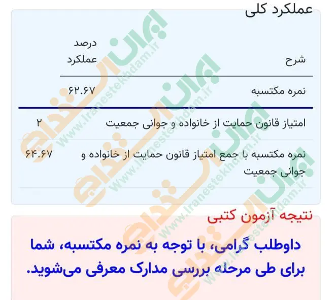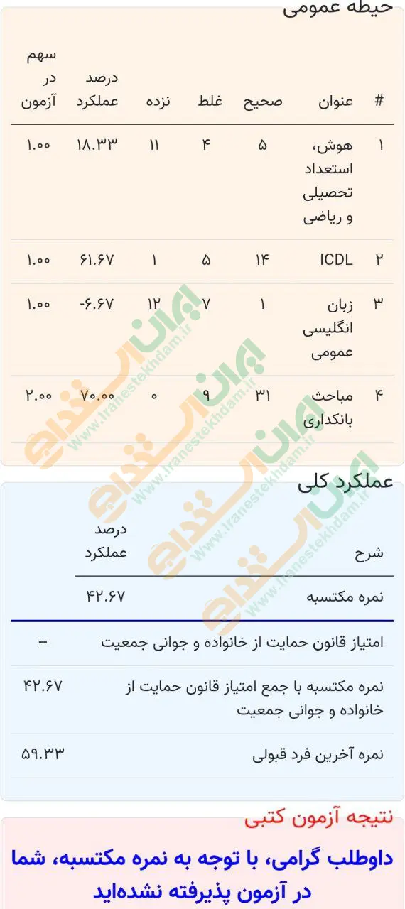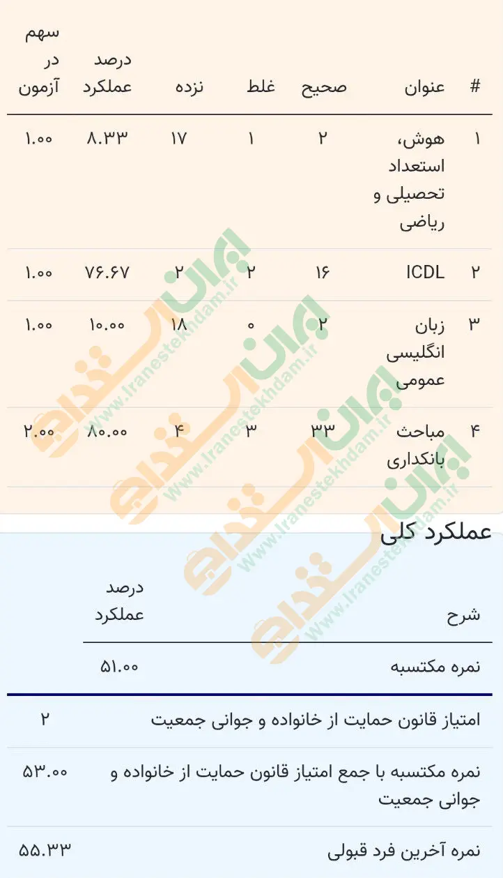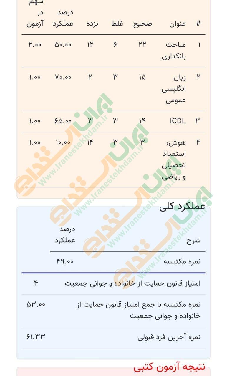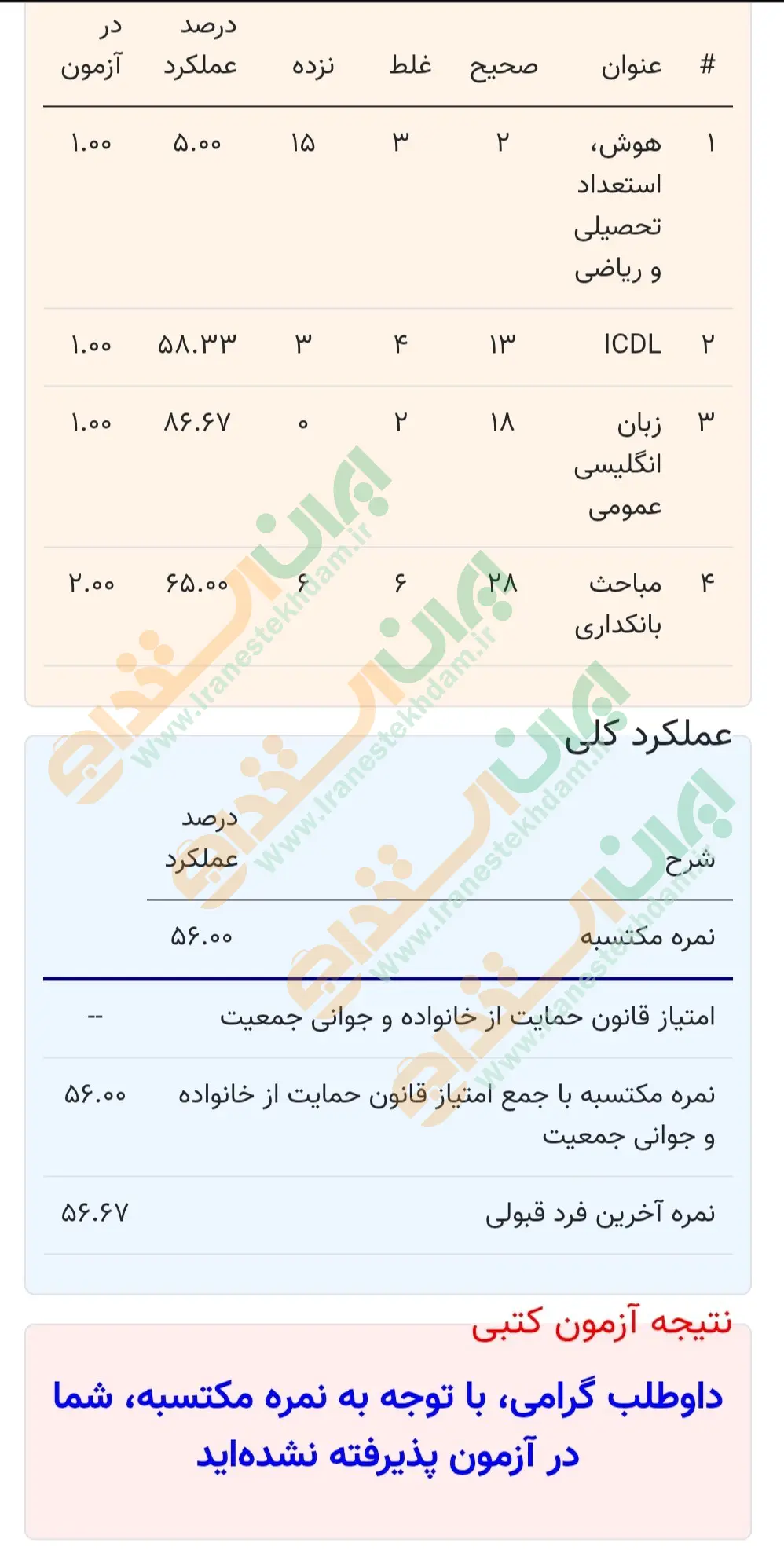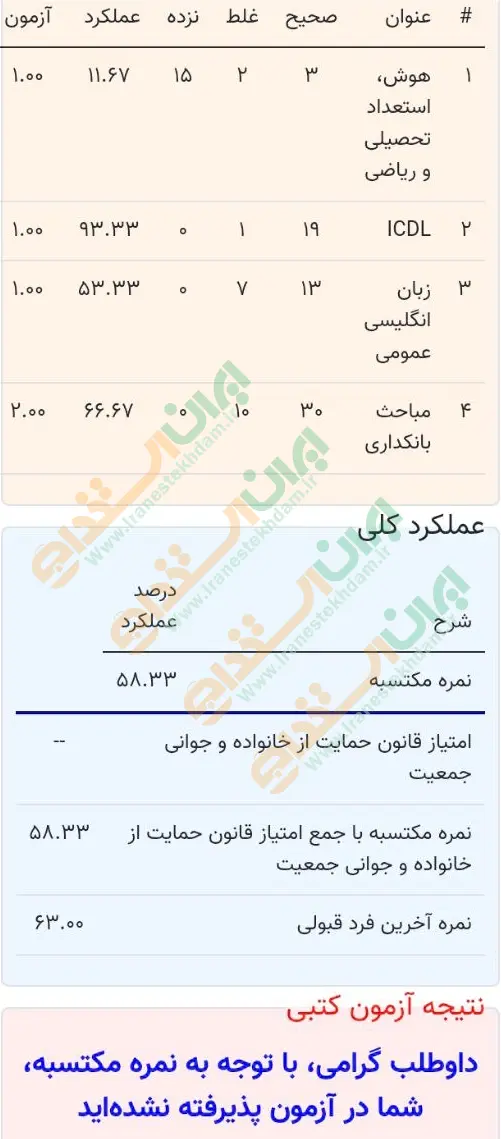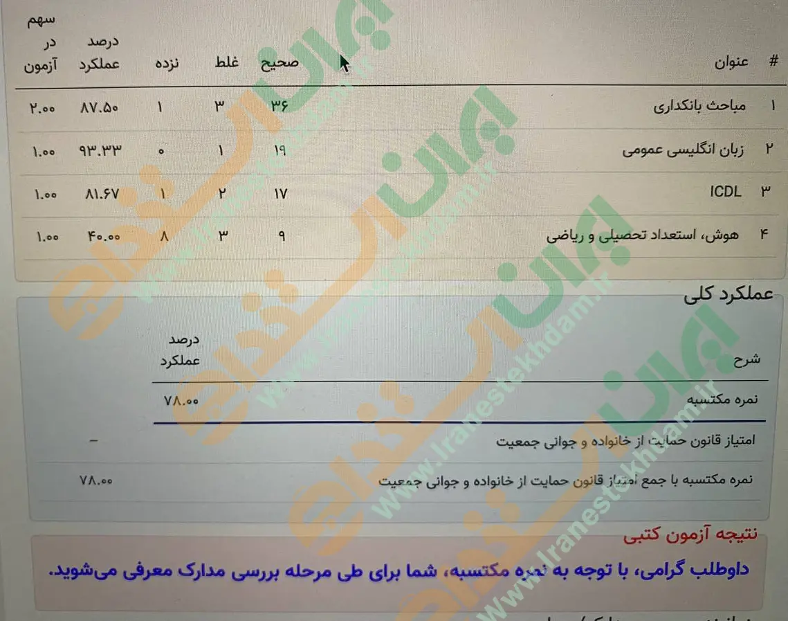 جهت مشاهده نمونه کارنامههای استخدامی بانک شهر در سال 1404 بر روی تصویر کارنامه کلیک نمایید.