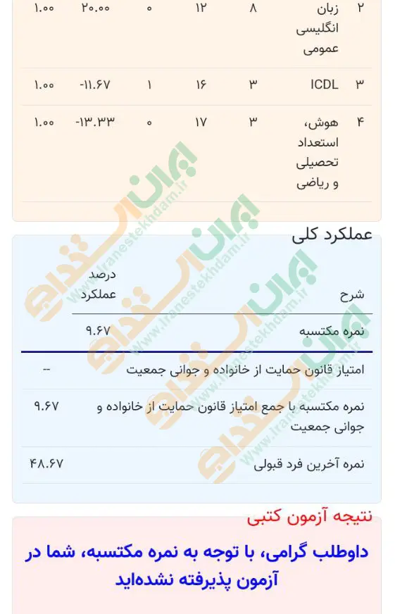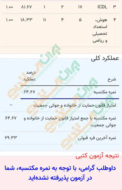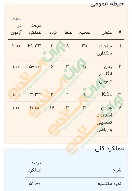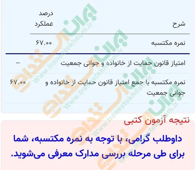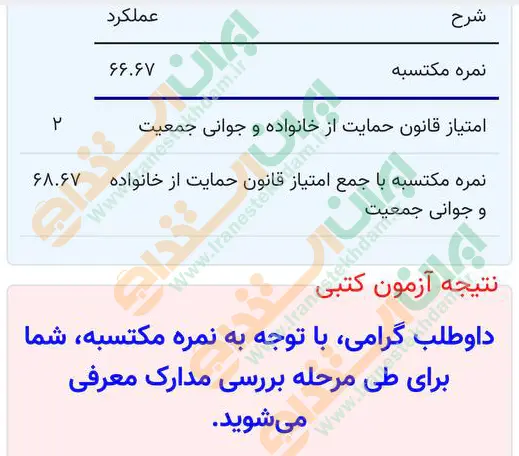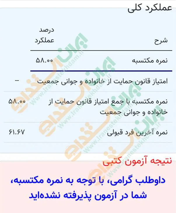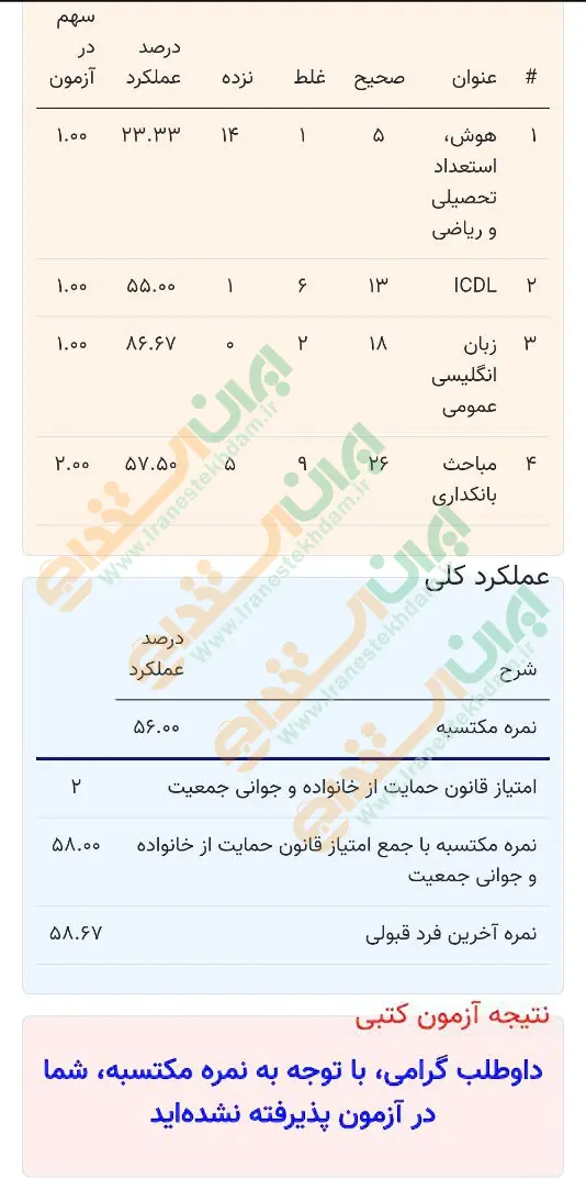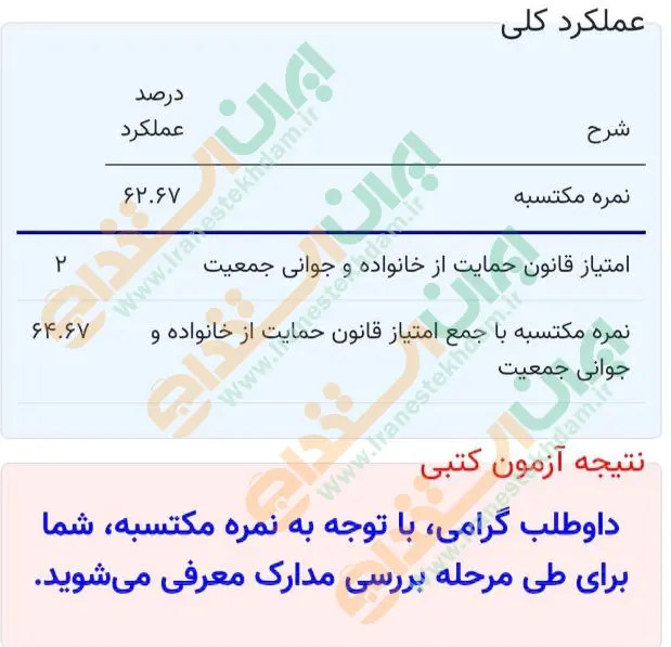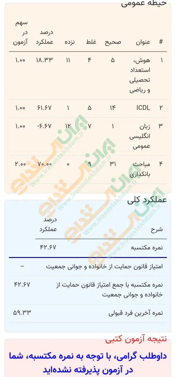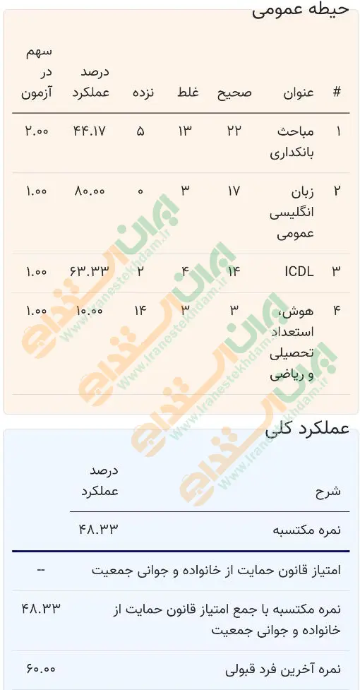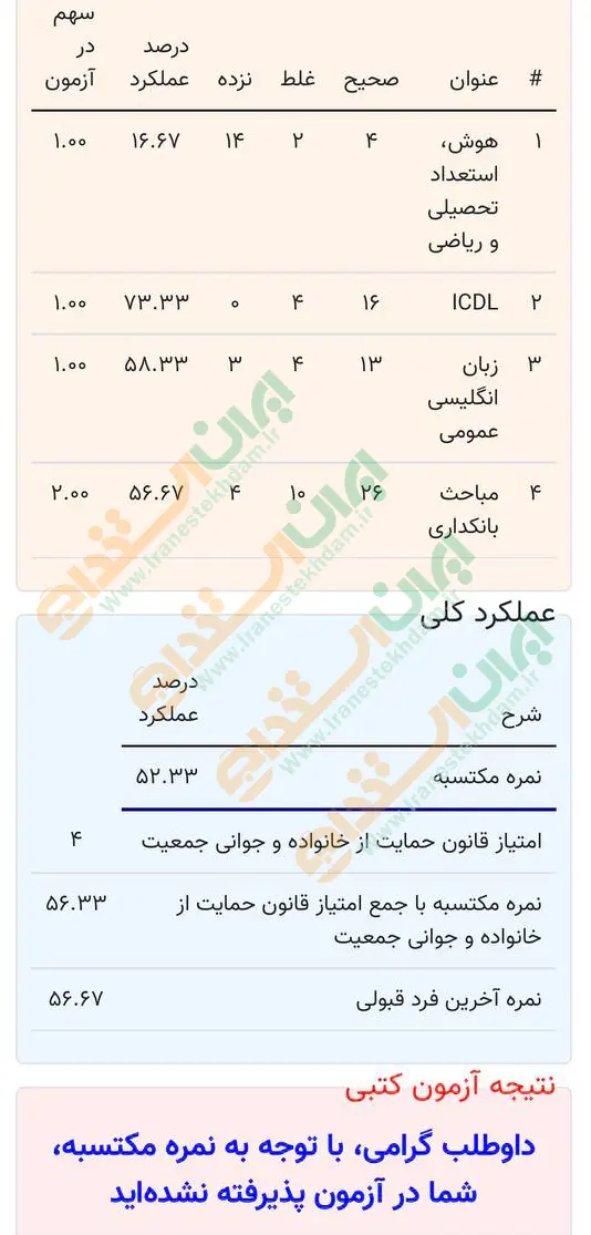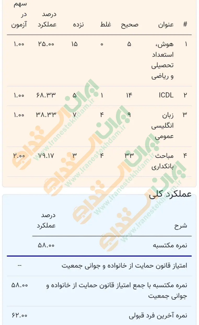 جهت مشاهده نمونه کارنامههای استخدامی بانک شهر در سال 1404 بر روی تصویر کارنامه کلیک نمایید.