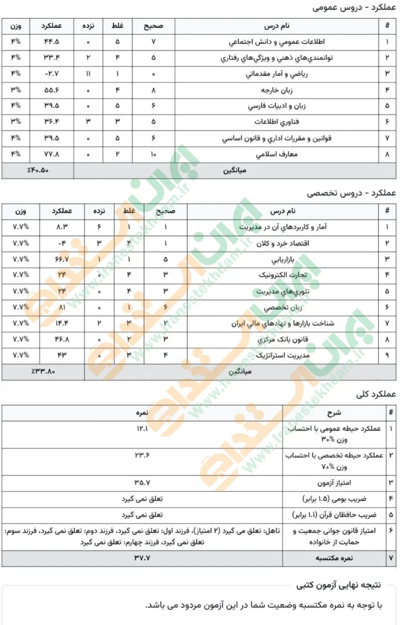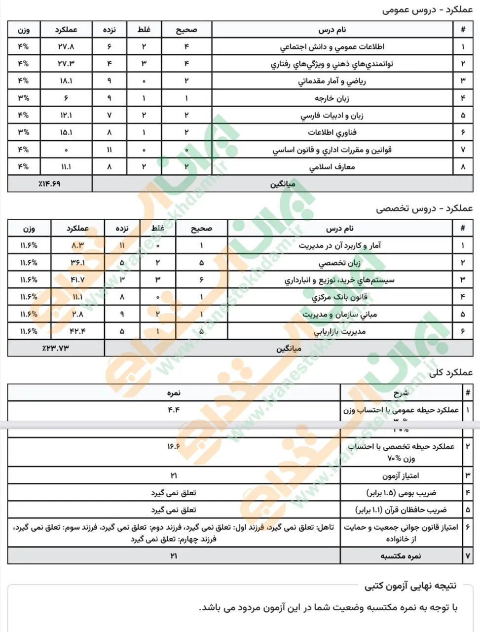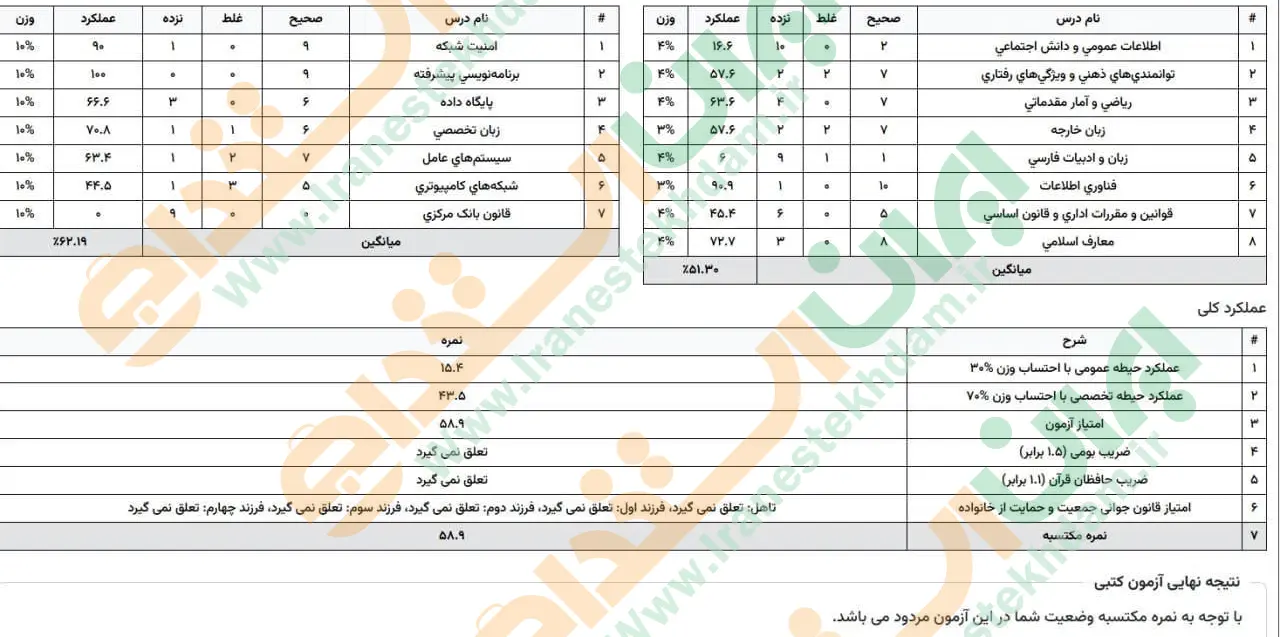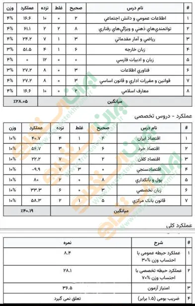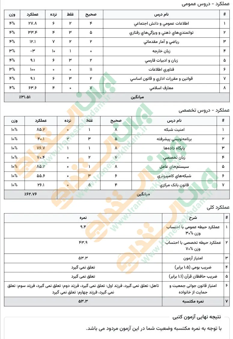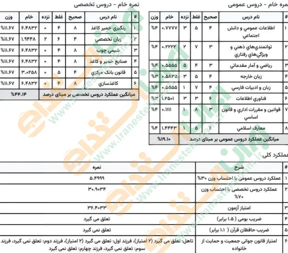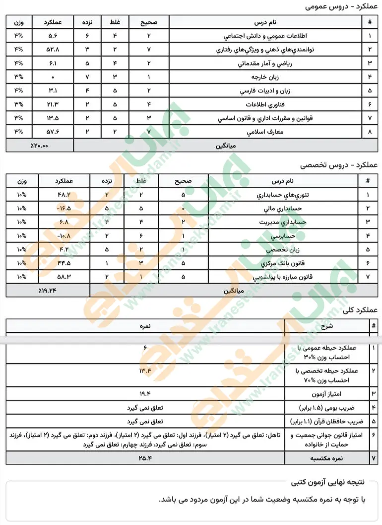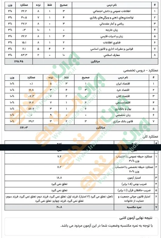 جهت مشاهده نمونه کارنامههای استخدامی بانک مرکزی بر روی تصویر کارنامه کلیک نمایید.