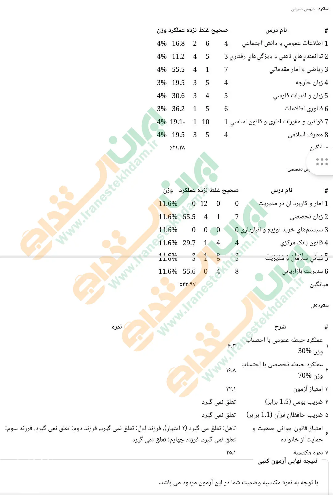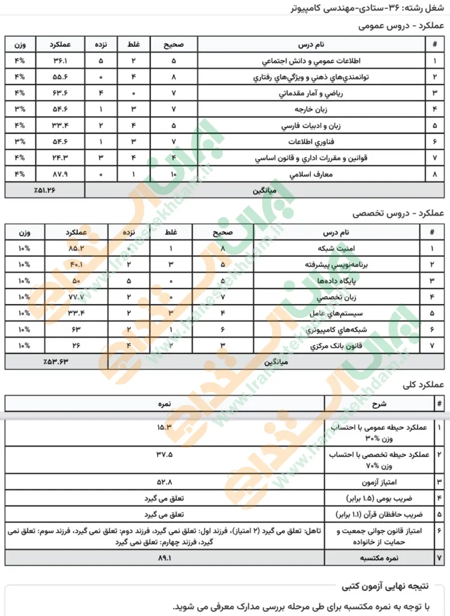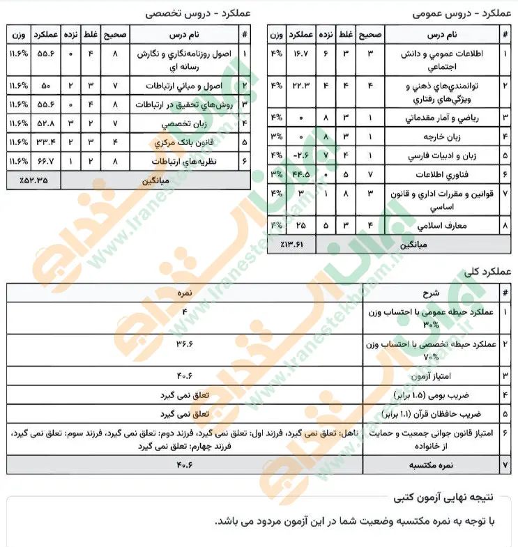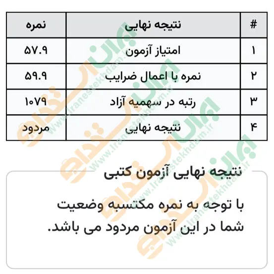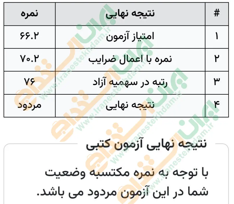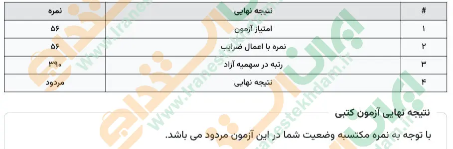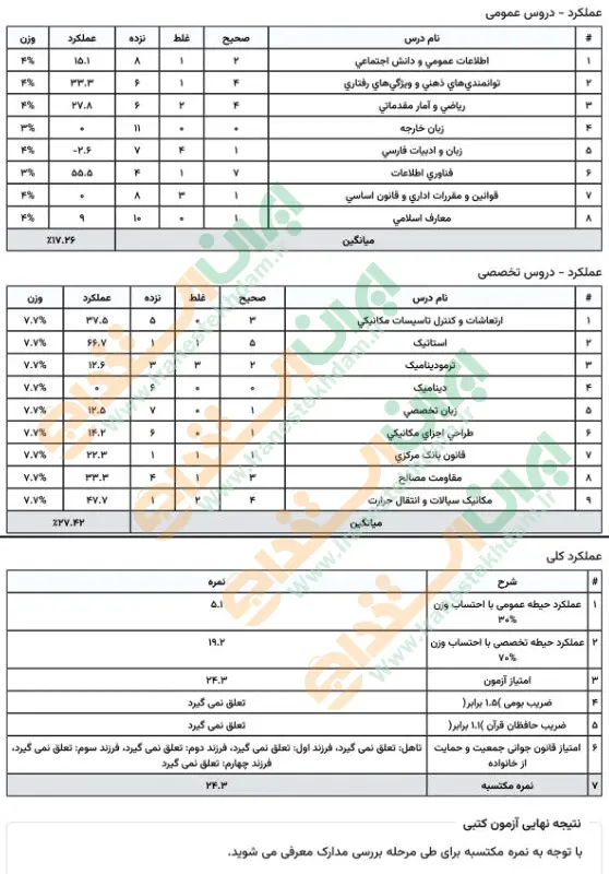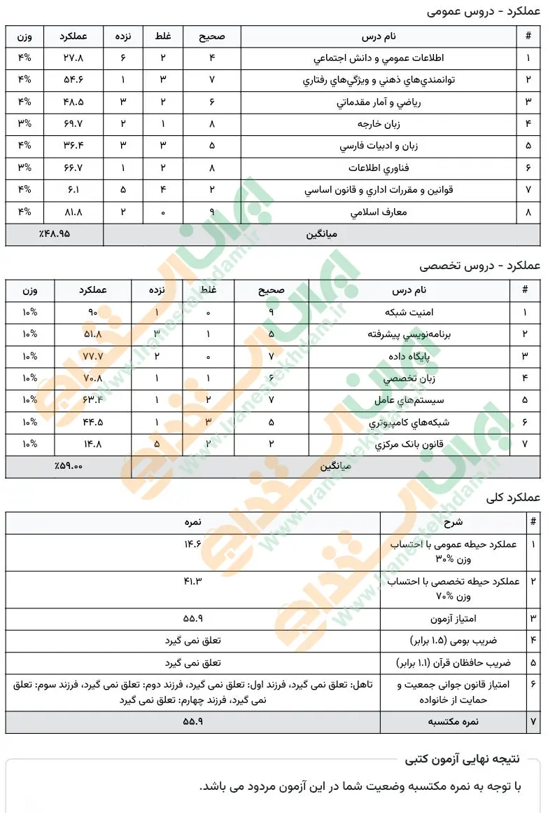 جهت مشاهده نمونه کارنامههای استخدامی بانک مرکزی بر روی تصویر کارنامه کلیک نمایید.