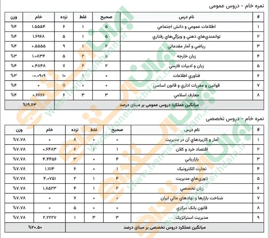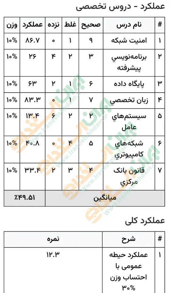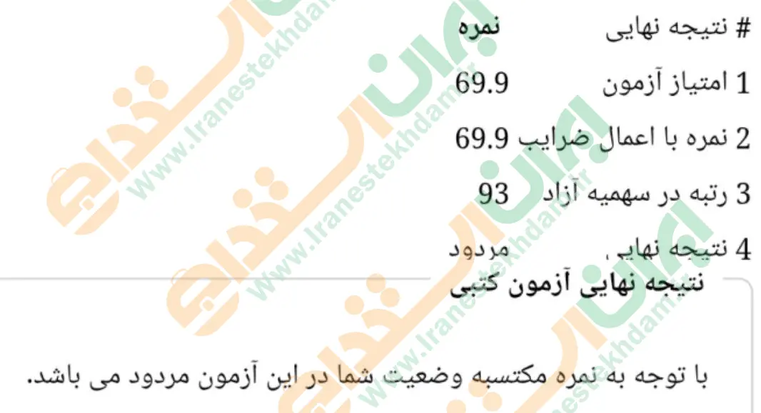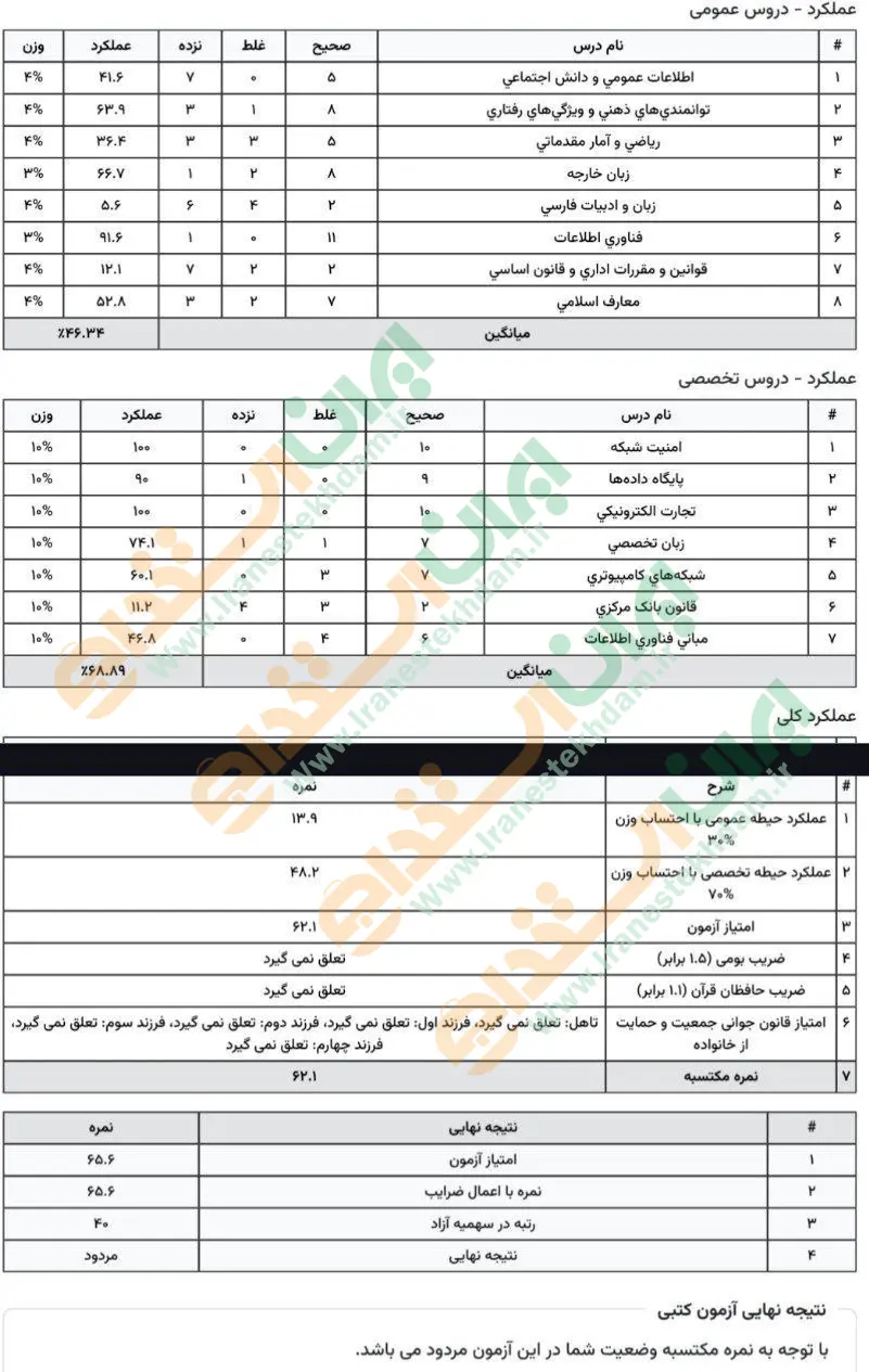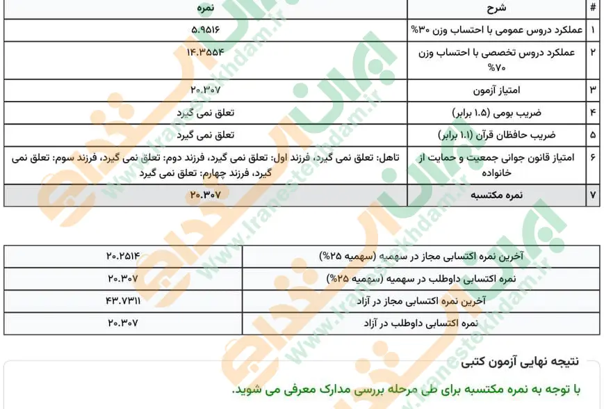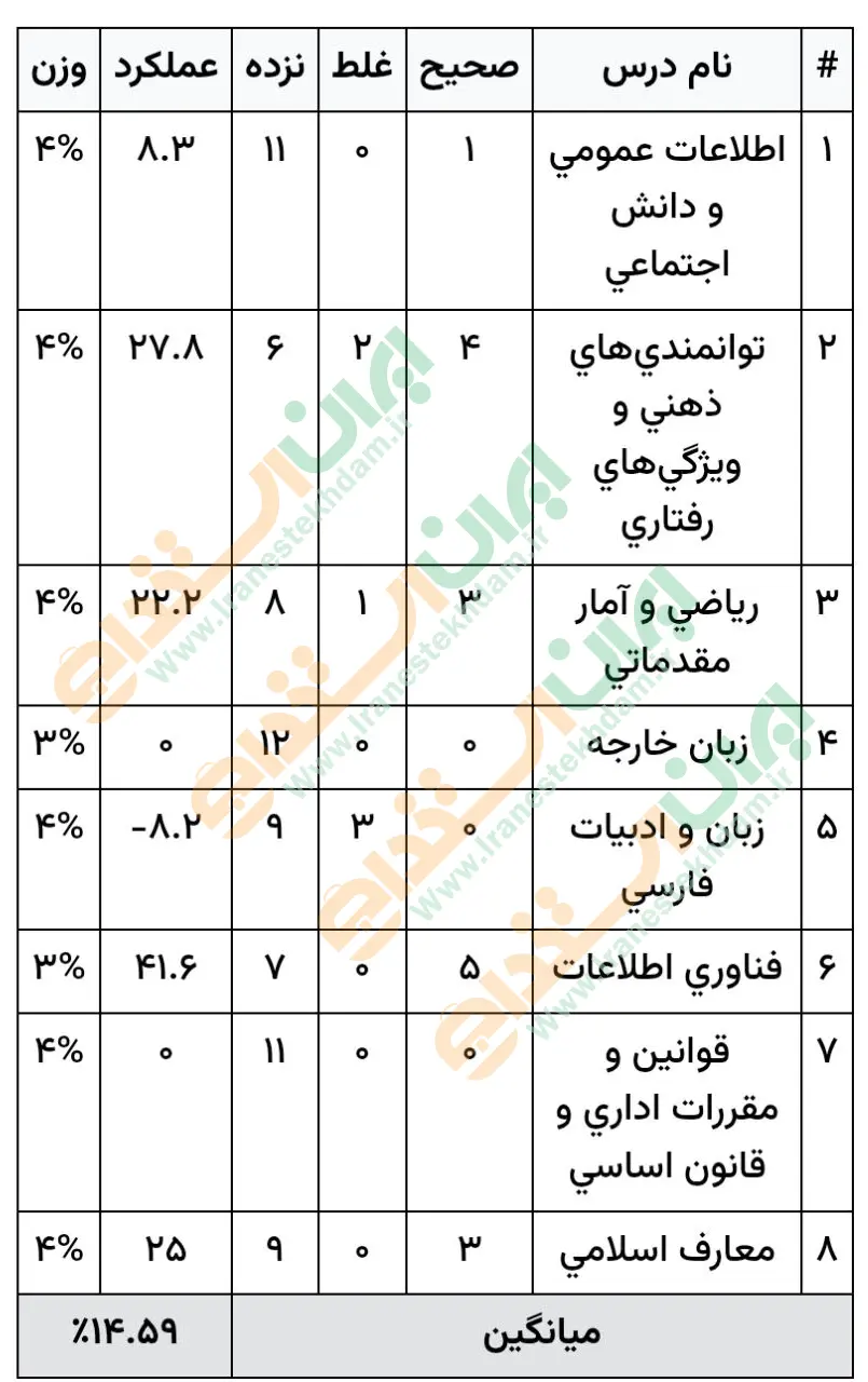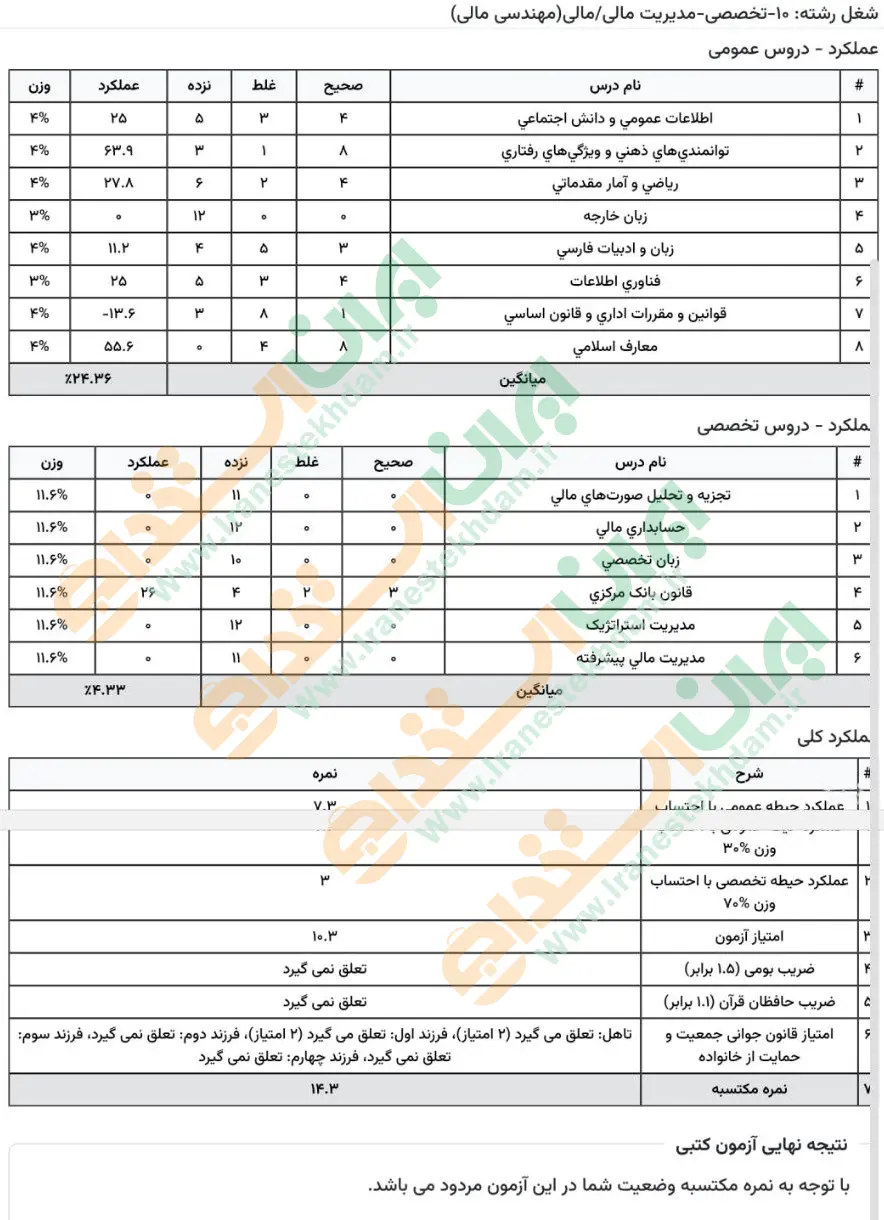 جهت مشاهده نمونه کارنامههای استخدامی بانک مرکزی بر روی تصویر کارنامه کلیک نمایید.